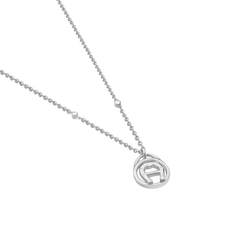 Part of the AIGNER Aida collection, this sophisticated AIGNER necklace is crafted from high-quality brass with a polished silver finish. The design centers on the iconic AIGNER horseshoe motif, suspended on a versatile chain measuring 450+50 mm to allow for an adjustable fit. This elegant AIGNER necklace embodies modern European luxury and is perfect for adding a refined touch to both professional attire and casual daily looks.