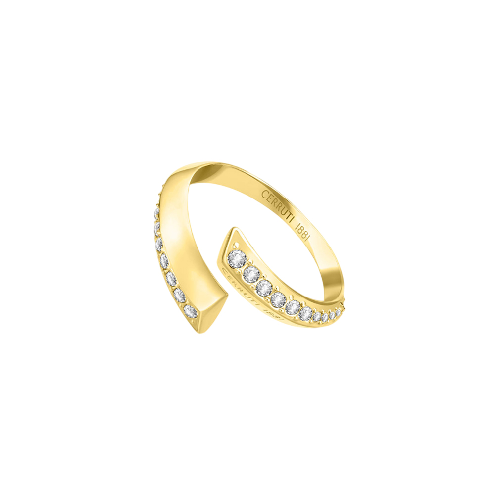 The CERRUTI 1881 Alessia Ring CIJLF0012101 is a symbol of modern elegance, meticulously crafted from high-grade stainless steel with a radiant yellow gold finish. This open, spiral-shaped CERRUTI ring is adorned with shimmering crystals that reflect an ethos of refined luxury. Designed for the woman who appreciates subtle glamour and the timeless style of CERRUTI 1881, this piece offers both durability and a sophisticated aesthetic. Available in size 52, this CERRUTI ring serves as a versatile accessory for enhancing any ensemble.
