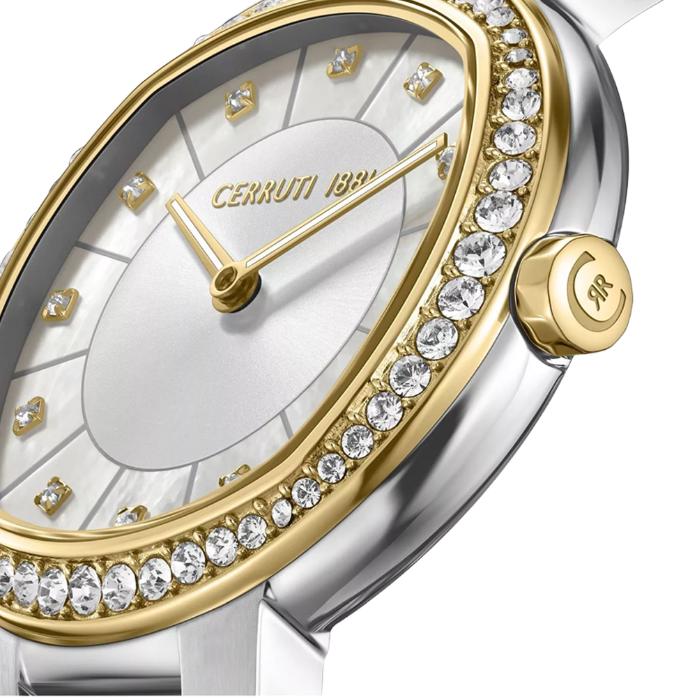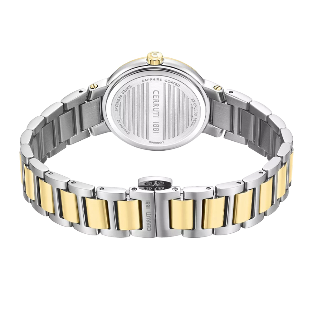 The CERRUTI 1881 Bellegra Women’s Watch CIWLG0086504 is designed to bring timeless elegance and feminine sophistication to your wrist. Crafted with a refined 32 mm round stainless steel case, this watch showcases a stunning silver mother-of-pearl dial that reflects light beautifully for a luxurious finish. Powered by reliable quartz movement, it delivers precise timekeeping with minimal maintenance. The stylish stainless steel bracelet in a silver and gold two-tone finish adds a touch of luxury while ensuring durability and comfort for daily wear or special occasions. Protected by mineral crystal and offering water resistance up to 50 metres, the Bellegra is both practical and elegant—making it a perfect accessory for work, events, and everyday styling.
