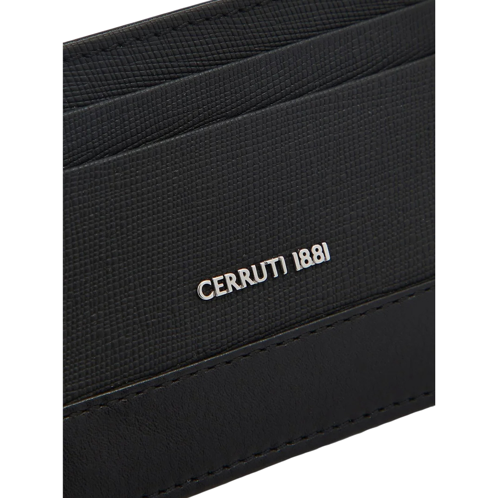 The CERRUTI 1881 Card Holder CEPU04937M BLA is a durable and stylish accessory designed for the modern man. Crafted from high-quality, lightweight calf leather, it features one main slip-in compartment and multiple external slip-in card slots for efficient organization. The design embodies a casual yet sophisticated style, perfect for everyday use. Complete with embossed CERRUTI 1881 signature branding, this card holder comes packaged in a branded box with a drawstring pouch, reflecting the brand's commitment to luxury and functionality.