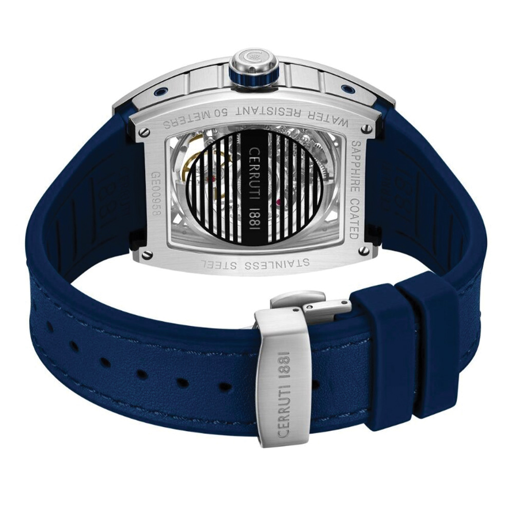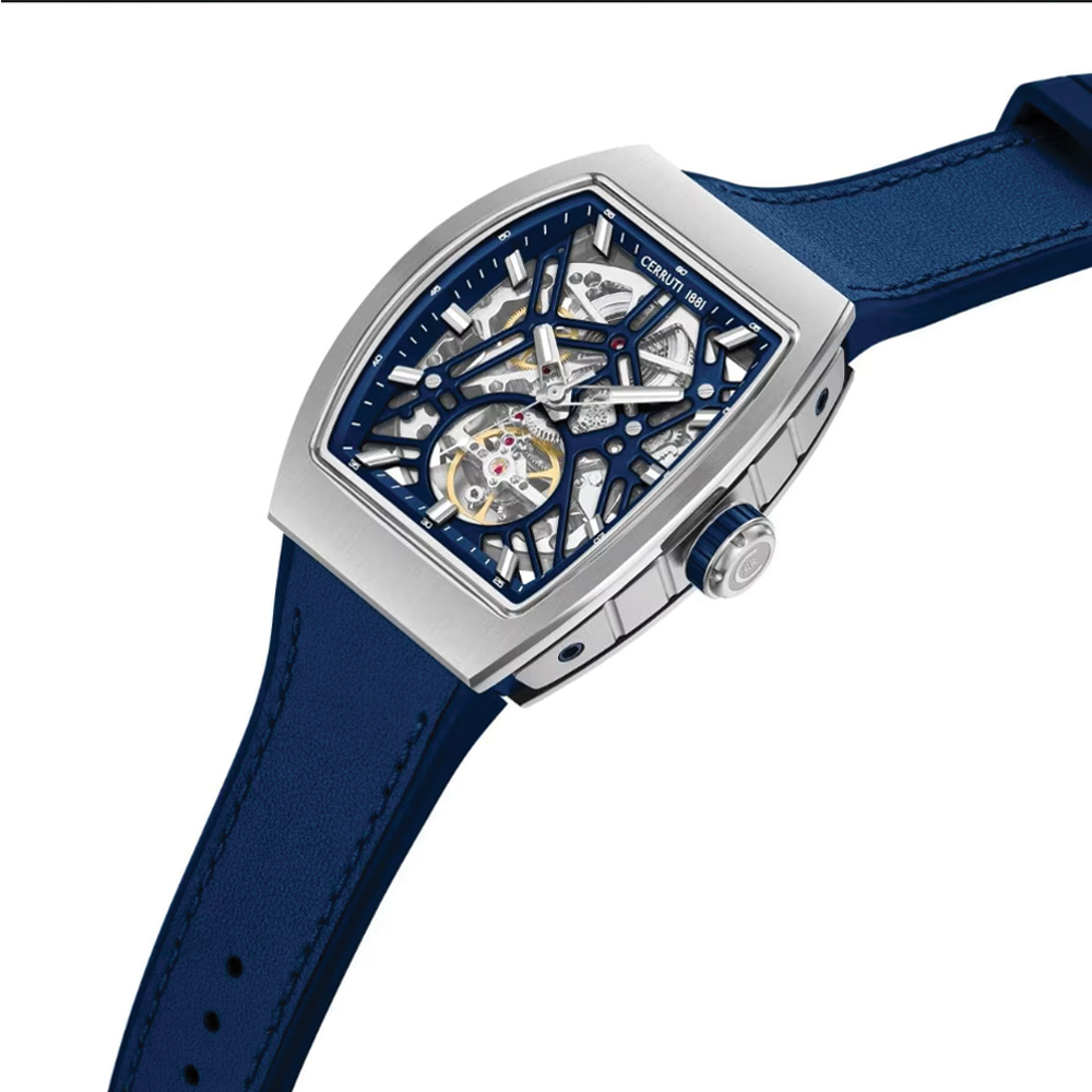 This Cerruti 1881 Calliano men’s watch features a striking blue dial that enhances its sporty and contemporary design. The 48mm case provides a strong wrist presence, while the matching blue silicone strap ensures comfort and durability for daily wear. Powered by an automatic movement, it delivers precise timekeeping without the need for a battery. Crafted with a stainless steel case and modern finishing, this watch blends functionality with bold aesthetics, making it ideal for everyday and active lifestyles.