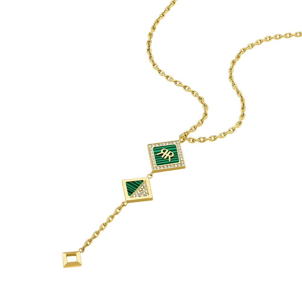 This sophisticated fashion necklace from CERRUTI 1881 is crafted from durable stainless steel with a high-shine IP gold coating. It features a 50 cm anchor chain secured by a lobster clasp, with unique square ornaments embedded with shimmering crystals. This delicate accessory adds a touch of glamour and refined elegance to any ensemble.