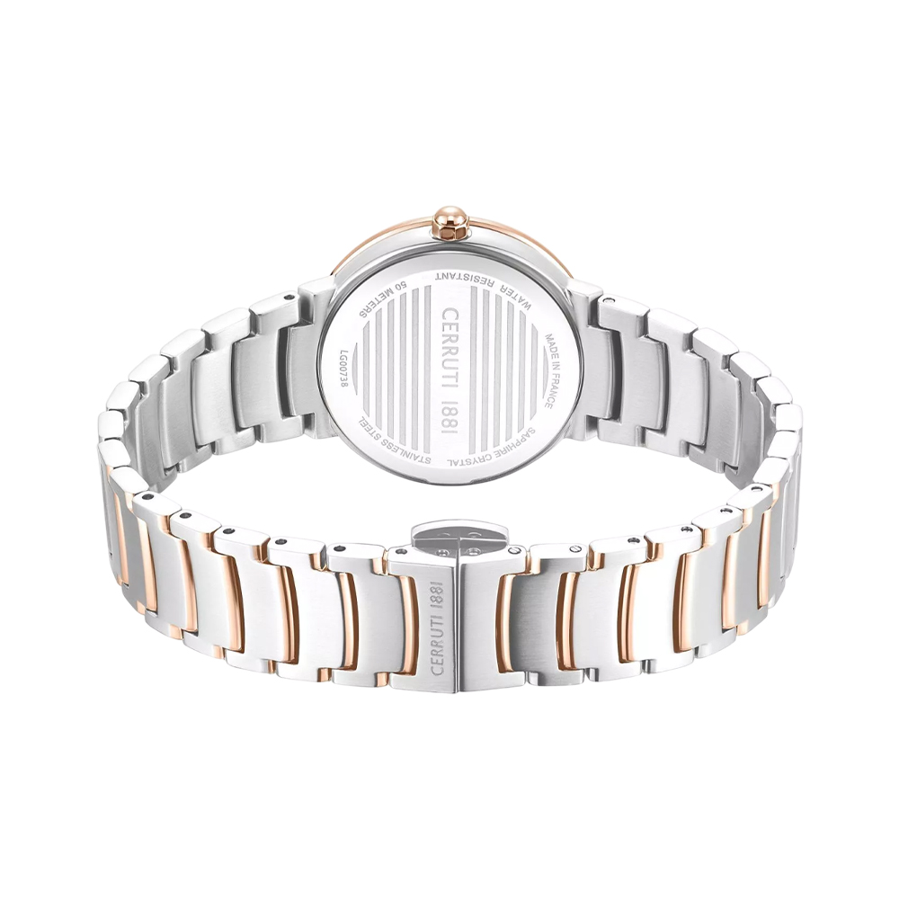 The CERRUTI 1881 Filiano captures the essence of refined femininity with its warm brown dial and silver-tone stainless-steel bracelet. Its minimalist design, sapphire-coated mineral glass, and reliable quartz movement create a balance between durability and grace. Perfect for both everyday wear and special occasions, it radiates contemporary charm with a timeless European flair.