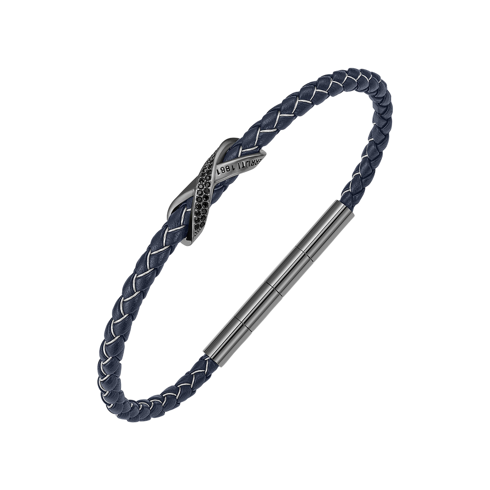 CERRUTI 1881 Franco CIAGB0012802 is a men’s bracelet crafted from navy blue braided leather, complemented by gunmetal stainless steel detailing for a bold yet sophisticated appearance. Designed with a comfortable 180mm length, it offers a secure fit suitable for daily wear. The combination of textured leather and sleek metal reflects CERRUTI 1881’s signature elegance and modern masculinity, making it a versatile accessory that pairs effortlessly with casual and smart-casual outfits.