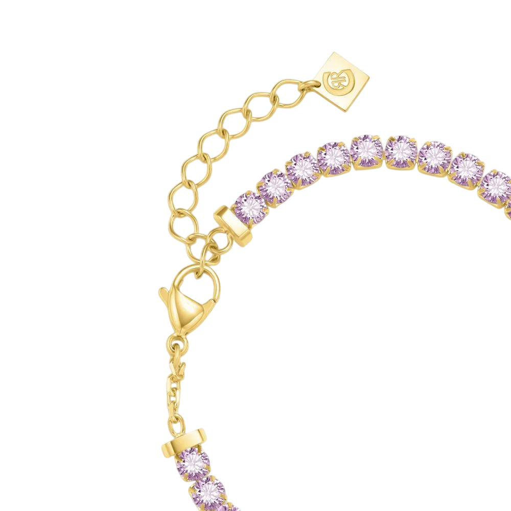 The CIJLB0012801 is a women's bracelet from Cerruti 1881, part of the Claudia collection. It features gold-plated stainless steel with beautiful rose crystals and a unique double C charm. This tennis-style bracelet combines elegance with a fashionable twist, perfect for adding a pop of glamour to any outfit.