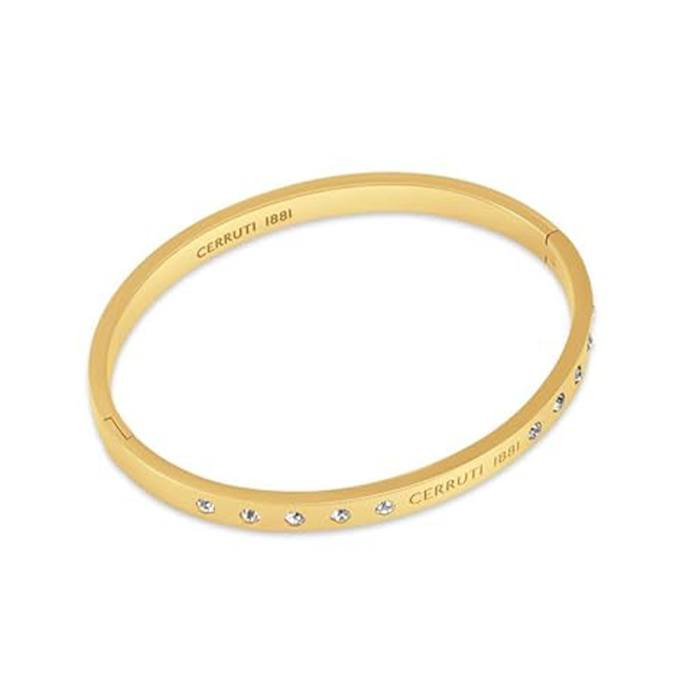 This sophisticated bangle from Cerruti 1881 showcases a clean and elegant design with signature branding details. Crafted for modern women, it offers a polished gold-tone finish that enhances both everyday outfits and special occasion looks with effortless luxury.