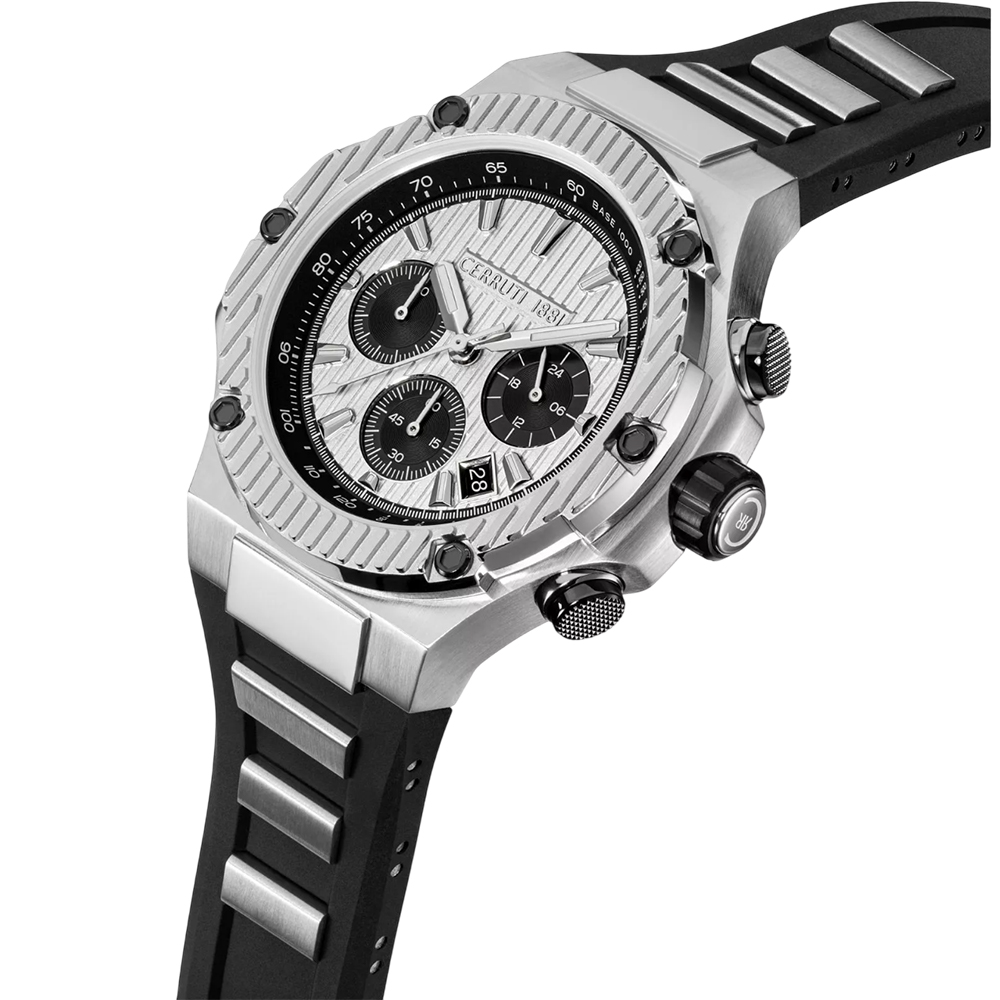 This interesting timepiece from the Lucardo collection combines functionality with an attractive modern design. The solid 44mm silver-toned stainless steel case frames an eye-catching multicolor dial, protected by durable mineral glass. Powered by a reliable quartz movement, the comfortable black silicone strap adds a sporty style. With 100 meters of water resistance, this watch is suitable for various activities including swimming, making it an excellent choice for men who appreciate style and practicality in everyday use.