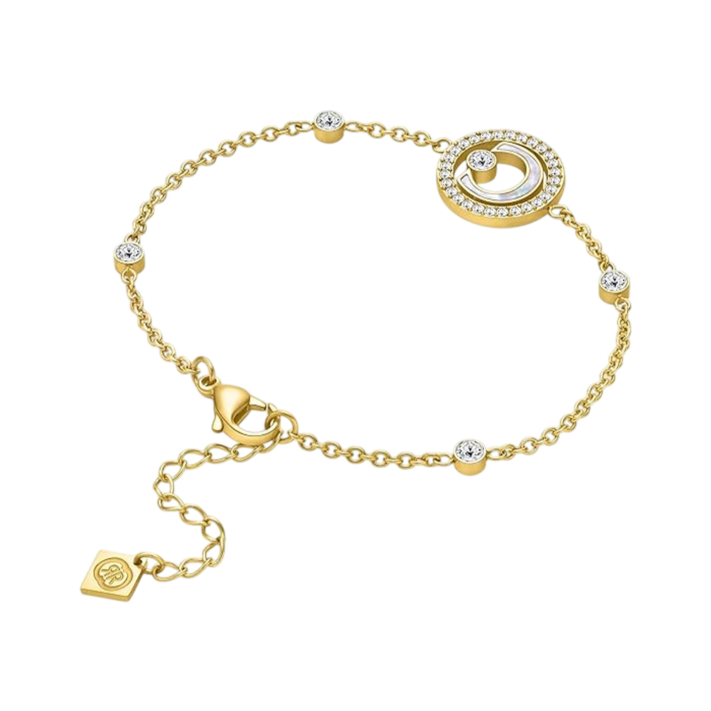 The CERRUTI 1881 MOP Gold Marque CIJLB0007301 bracelet is crafted from premium stainless steel with a refined gold-tone finish. The design is highlighted by a luminous mother-of-pearl marquee charm, adding a soft, sophisticated glow to the bracelet. Elegant and lightweight, it reflects CERRUTI 1881’s signature European luxury and timeless femininity. Perfect for daily wear or special occasions, this bracelet effortlessly enhances both casual and formal outfits.