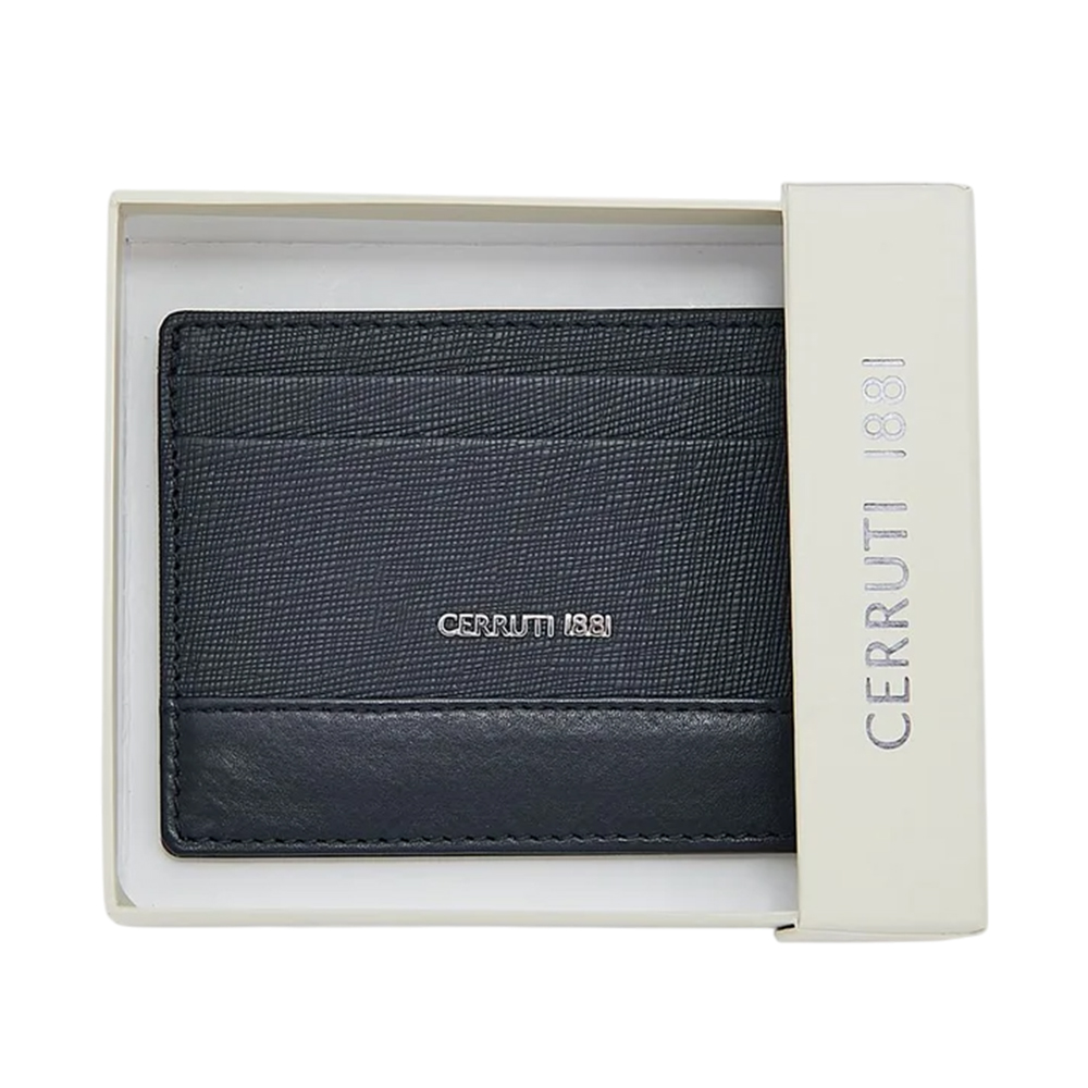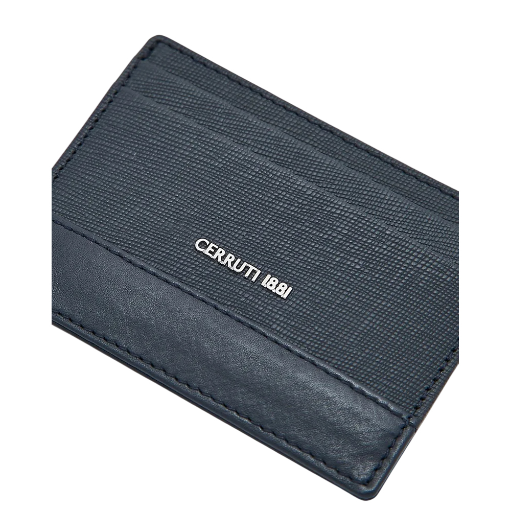 The CERRUTI 1881 Card Holder CEPU04937M BLU is a durable and stylish accessory designed for the modern man. Crafted from high-quality, lightweight calf leather, it features one main slip-in compartment and multiple external slip-in card slots for efficient organization. The design embodies a casual yet sophisticated style, perfect for everyday use. Complete with embossed CERRUTI 1881 signature branding, this card holder comes packaged in a branded box with a drawstring pouch, reflecting the brand's commitment to luxury and functionality.