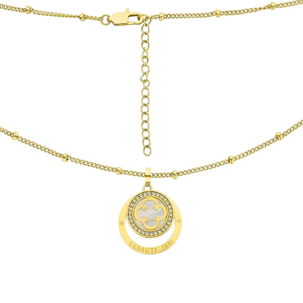The CERRUTI 1881 Onagrace Necklace CIJLN0000722 is a testament to refined Parisian style, meticulously crafted from high-grade stainless steel with a radiant gold-plated finish. This CERRUTI necklace features a sleek and modern pendant that sits gracefully on a 400 mm chain, making it an ideal length for layering or wearing as a standalone statement. Reflecting the CERRUTI brand’s commitment to quality and timeless aesthetics, this necklace offers a durable yet luxurious accessory choice for the modern woman.