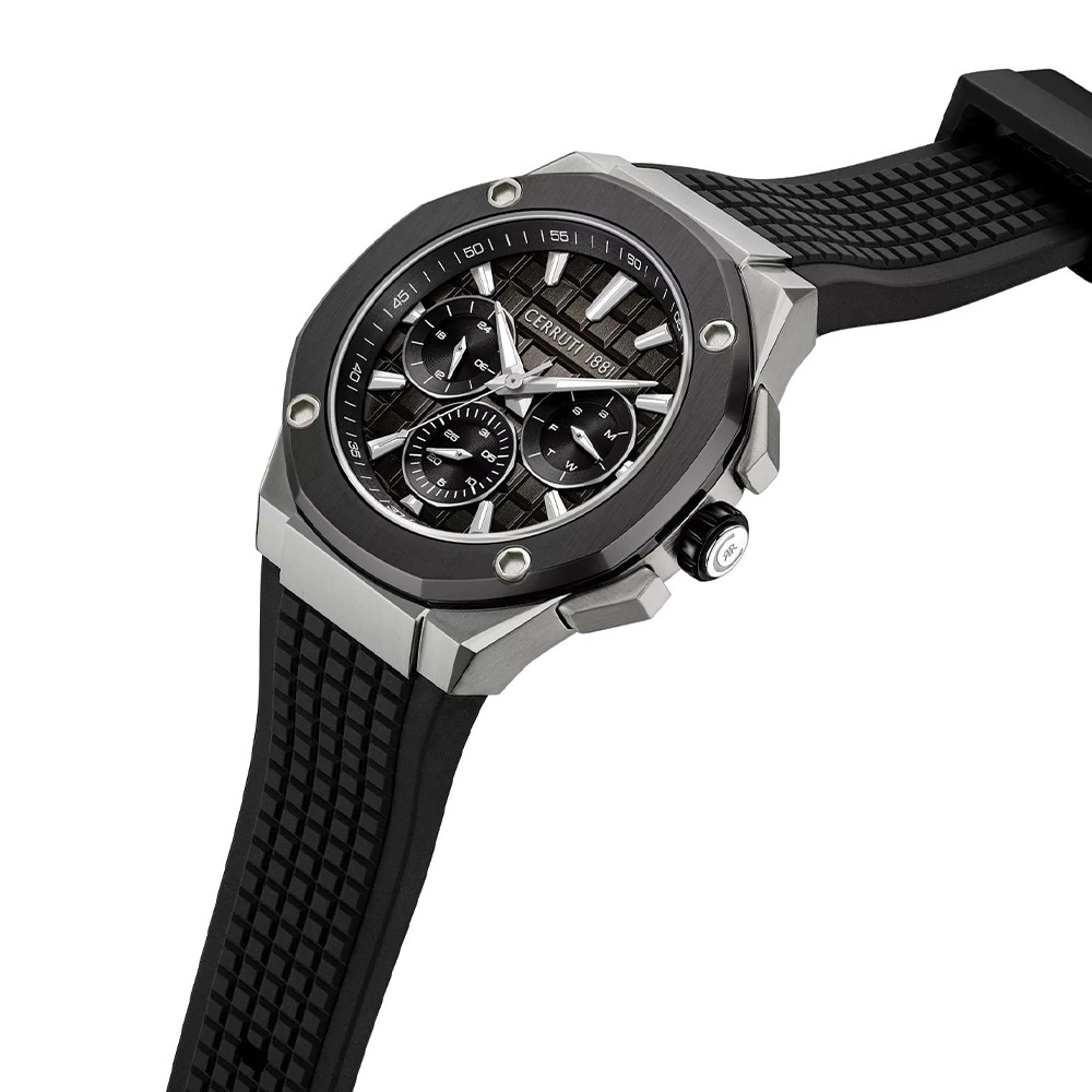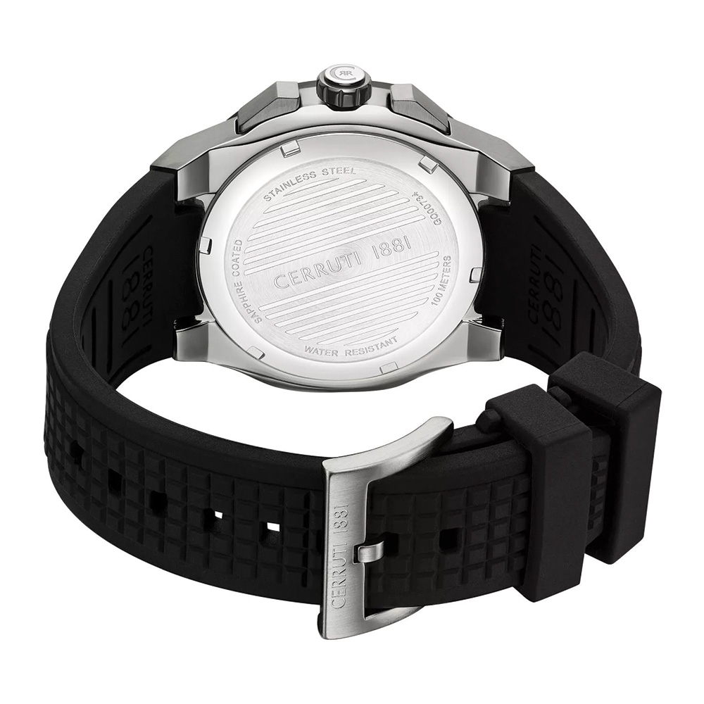 This Cerruti 1881 Razzuolo men’s watch features a sleek black dial that delivers a strong and contemporary look. The 46mm stainless steel case offers a bold wrist presence, complemented by a comfortable black silicone strap for all-day wear. Protected by mineral glass and powered by a reliable quartz movement, it ensures accurate timekeeping and durability. With water resistance up to 5 ATM, this watch is suitable for everyday use, making it a perfect blend of style and practicality.