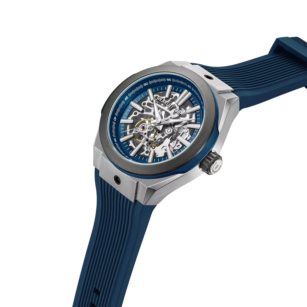 This timepiece combines functionality with an attractive, contemporary design. The solid 48mm silver-toned stainless steel case frames an intense blue dial protected by durable mineral glass. Powered by a reliable quartz movement, the integrated blue silicone strap ensures comfortable wear and a stylish, sporty look. With 50 meters of water resistance, this watch is an ideal choice for men who appreciate practicality, modern aesthetics, and the Italian elegance of CERRUTI 1881.