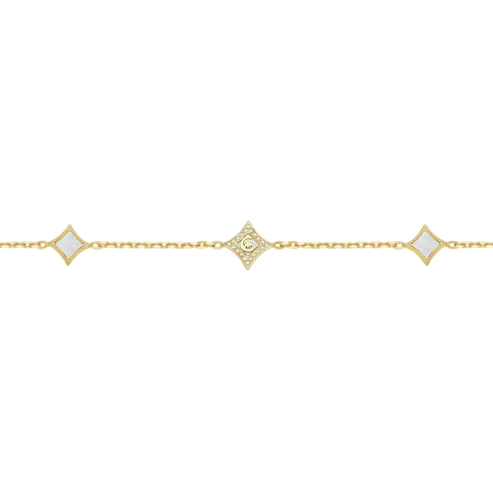 The CERRUTI 1881 Silvia CIJLB0012602 bracelet is crafted from high-quality stainless steel with a refined gold finish. Its elegant chain design is enhanced by three attractive charms, each beautifully studded with shimmering crystals that add a touch of luxury and femininity. Designed to be lightweight and graceful, this bracelet reflects CERRUTI 1881’s signature blend of modern elegance and timeless European style. Ideal for everyday wear or special occasions, it effortlessly complements casual, formal, and evening looks.