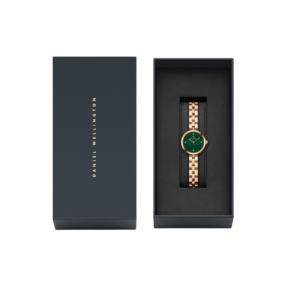 This timepiece represents the first crossover between the jewelry and watch collections, sharing the same delicate silhouette as its namesake pieces. It features a genuine green malachite dial dotted with shimmering crystals, housed in a slender 7mm 316L stainless steel case with rose gold PVD plating. As malachite is a natural stone, each dial is truly unique. Powered by a reliable Japanese quartz movement, it offers 3 ATM water resistance and interchangeable strap compatibility for versatile style.