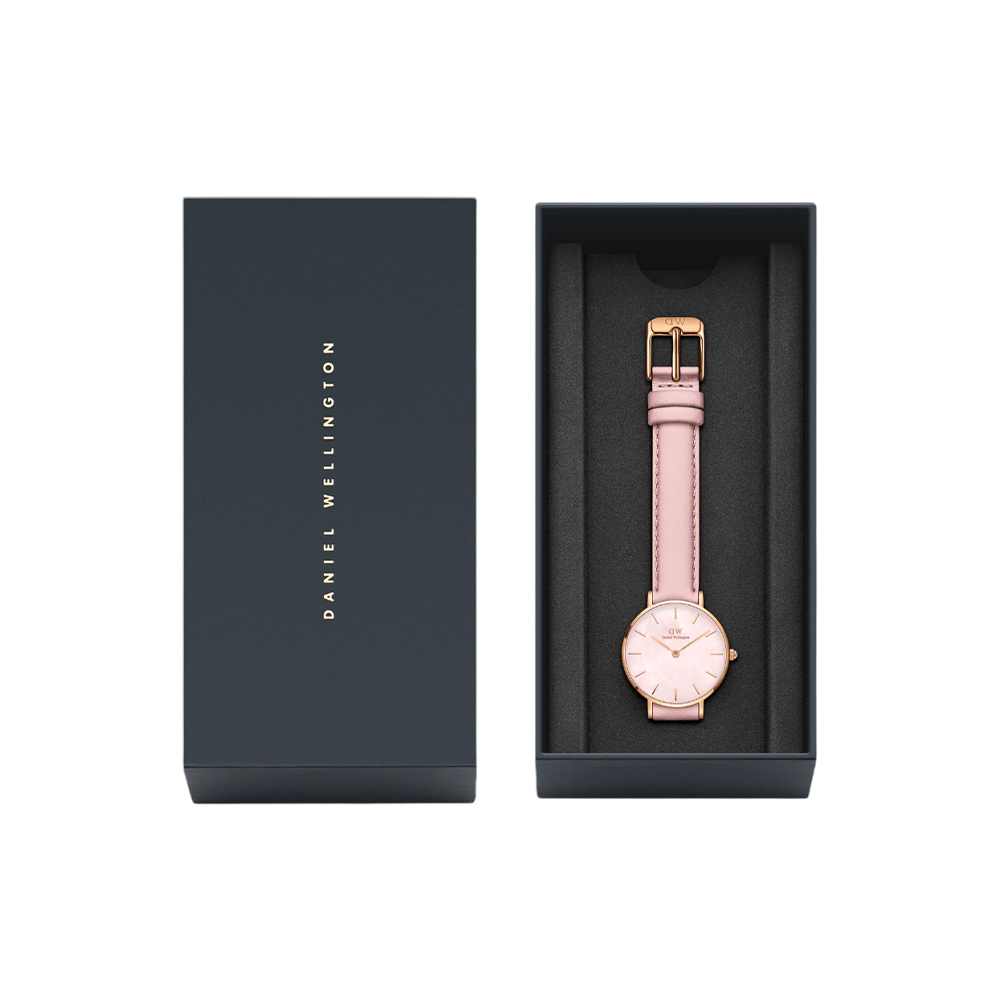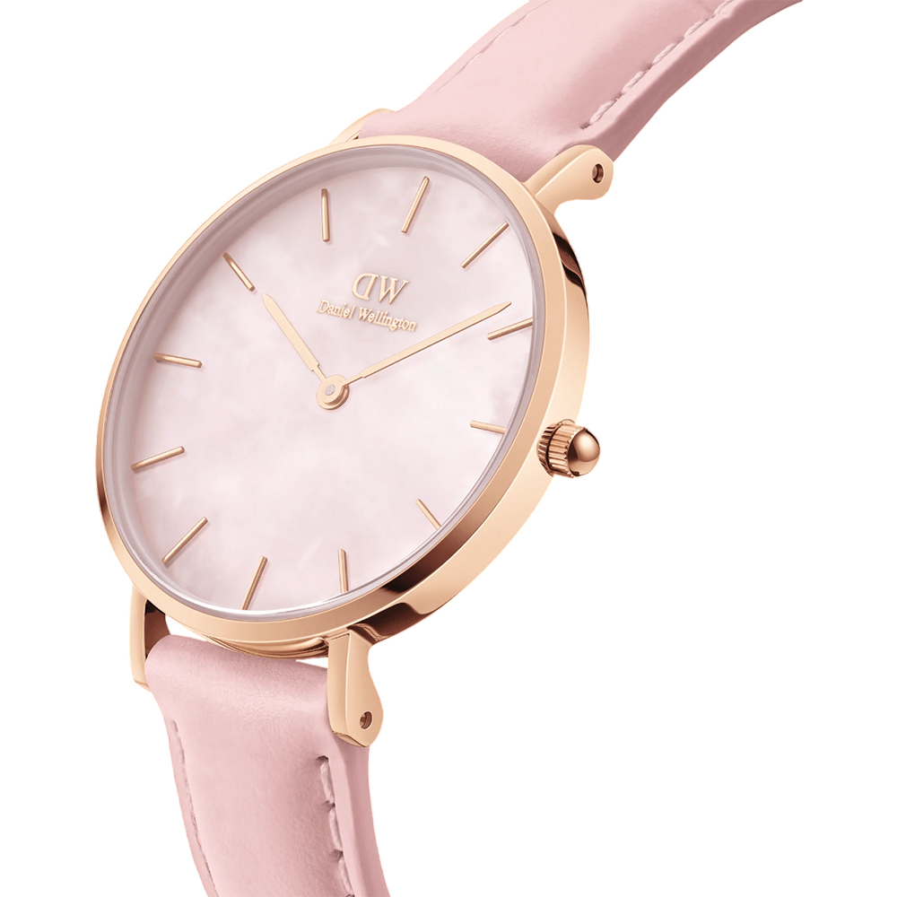 This spectacular Daniel Wellington special edition timepiece captures the essence of spring. It features a genuine pink mother-of-pearl dial that reflects soft, iridescent shades with every movement, housed in a slender 6mm stainless steel case with rose gold PVD plating. Powered by a reliable Japanese quartz movement, this Daniel Wellington watch is paired with a premium pink Napa leather strap for a soft, comfortable feel. With 3 ATM water resistance and interchangeable strap functionality, this Daniel Wellington watch is a poetic and elegant accessory for any feminine wardrobe.