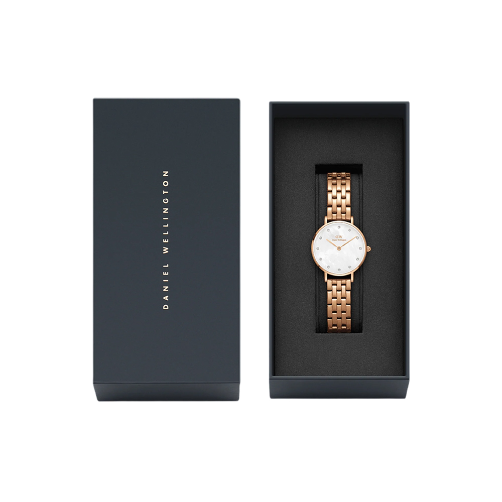 This exquisitely designed timepiece combines refined luxury with modern minimalism. It features a genuine white Mother of Pearl dial with stick indices, protected by durable mineral glass and powered by a reliable Japanese quartz movement. The refined 316L stainless steel 5-link bracelet, with a PVD plated rose gold finish, provides a comfortable and secure fit with a deployment clasp (standard for this style). With 3 ATM water resistance (rain resistant), this watch is an ideal and versatile accessory for any elegant ensemble.