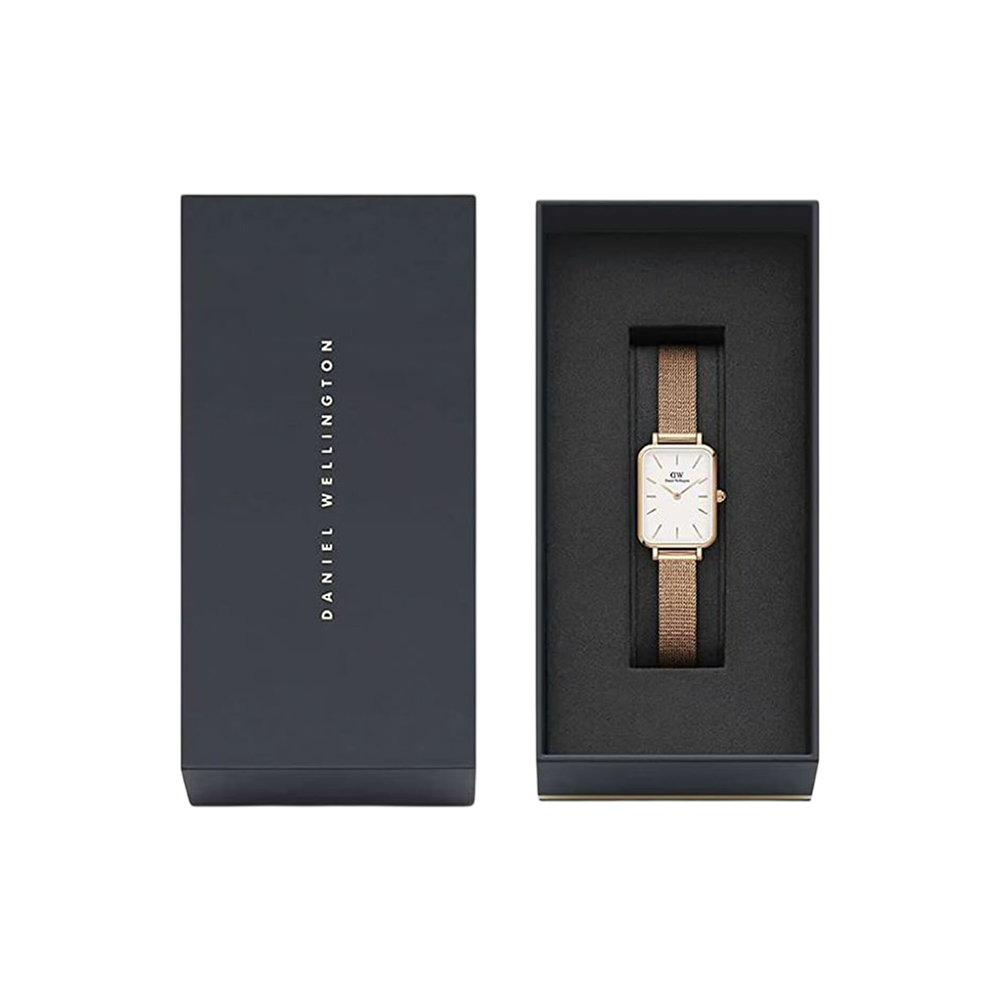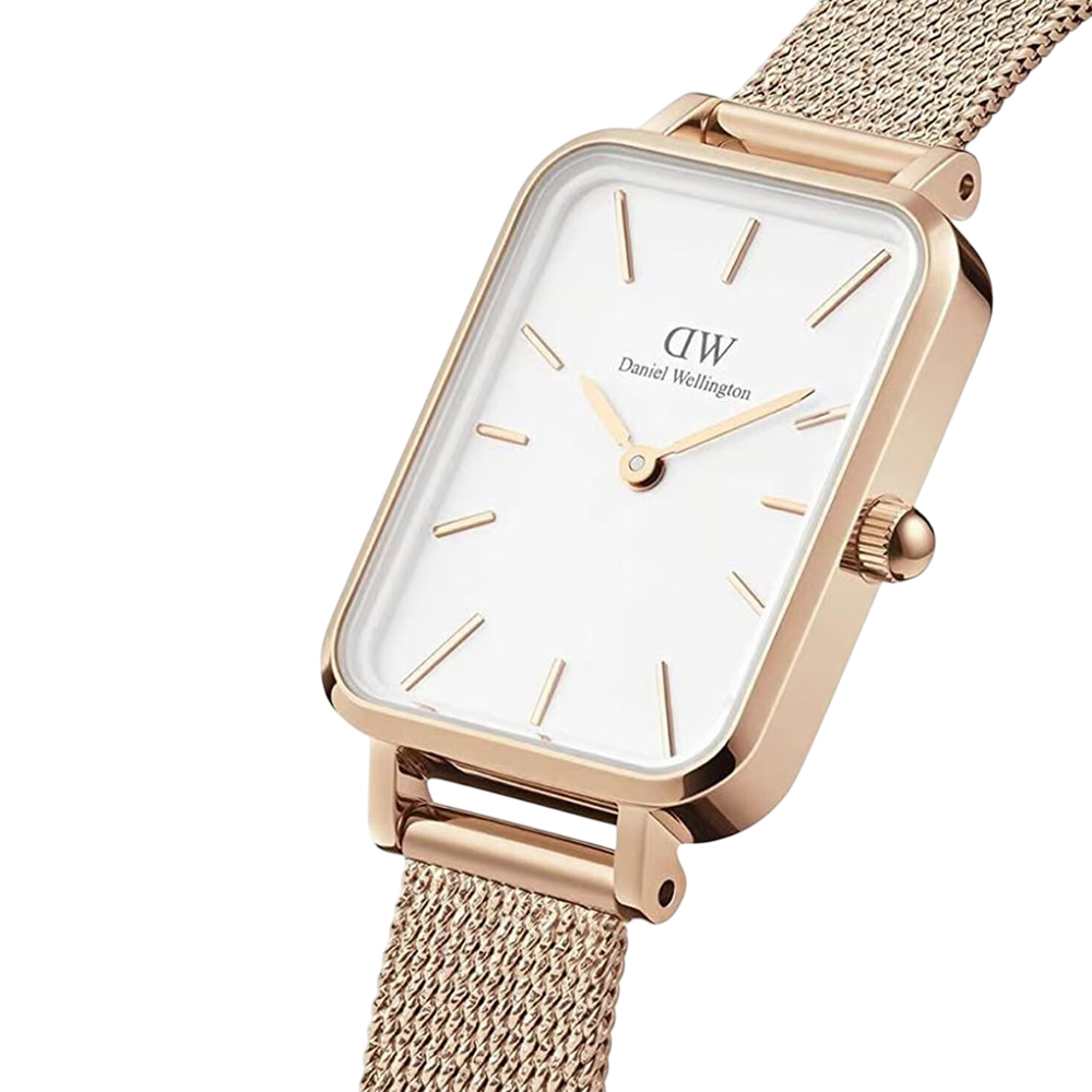 This stylish timepiece from the Quadro collection offers a modern and minimalist design. It features a crisp white analog dial with stick indices, protected by durable mineral glass and powered by a precise two-hand quartz movement. The refined rose gold-plated stainless steel mesh bracelet provides a comfortable and secure fit with an adjustable hook buckle clasp. With 30m water resistance, this watch is ideal for adding a touch of contemporary elegance to any daily outfit.