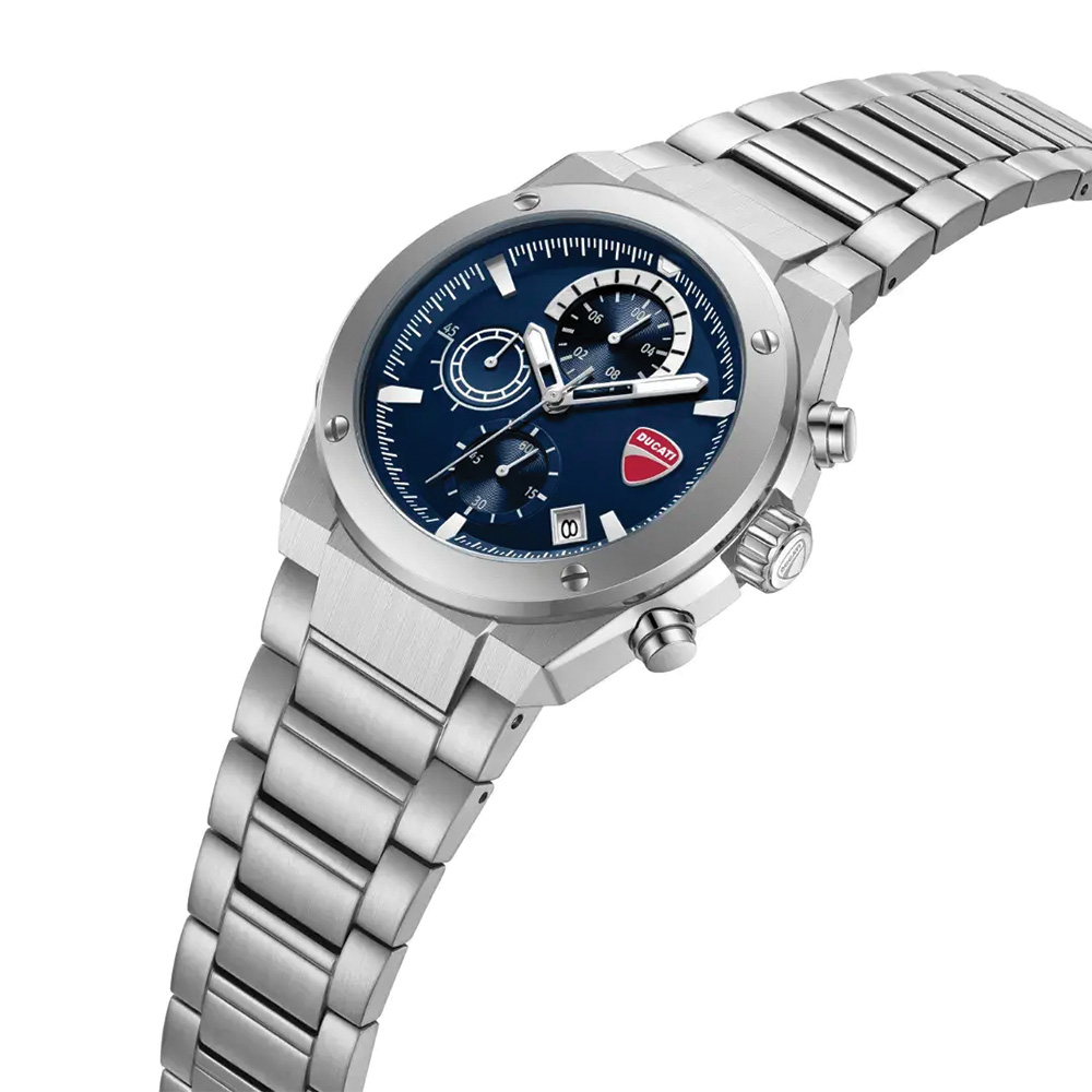 This Ducati watch features a stainless steel case paired with a vibrant blue dial for a sleek and contemporary appearance. Designed with a durable stainless steel bracelet, it ensures long-lasting comfort and wearability. Powered by a precise quartz movement and protected by mineral glass, it delivers reliable timekeeping. With 50 meters water resistance, it is suitable for daily use and light water exposure.