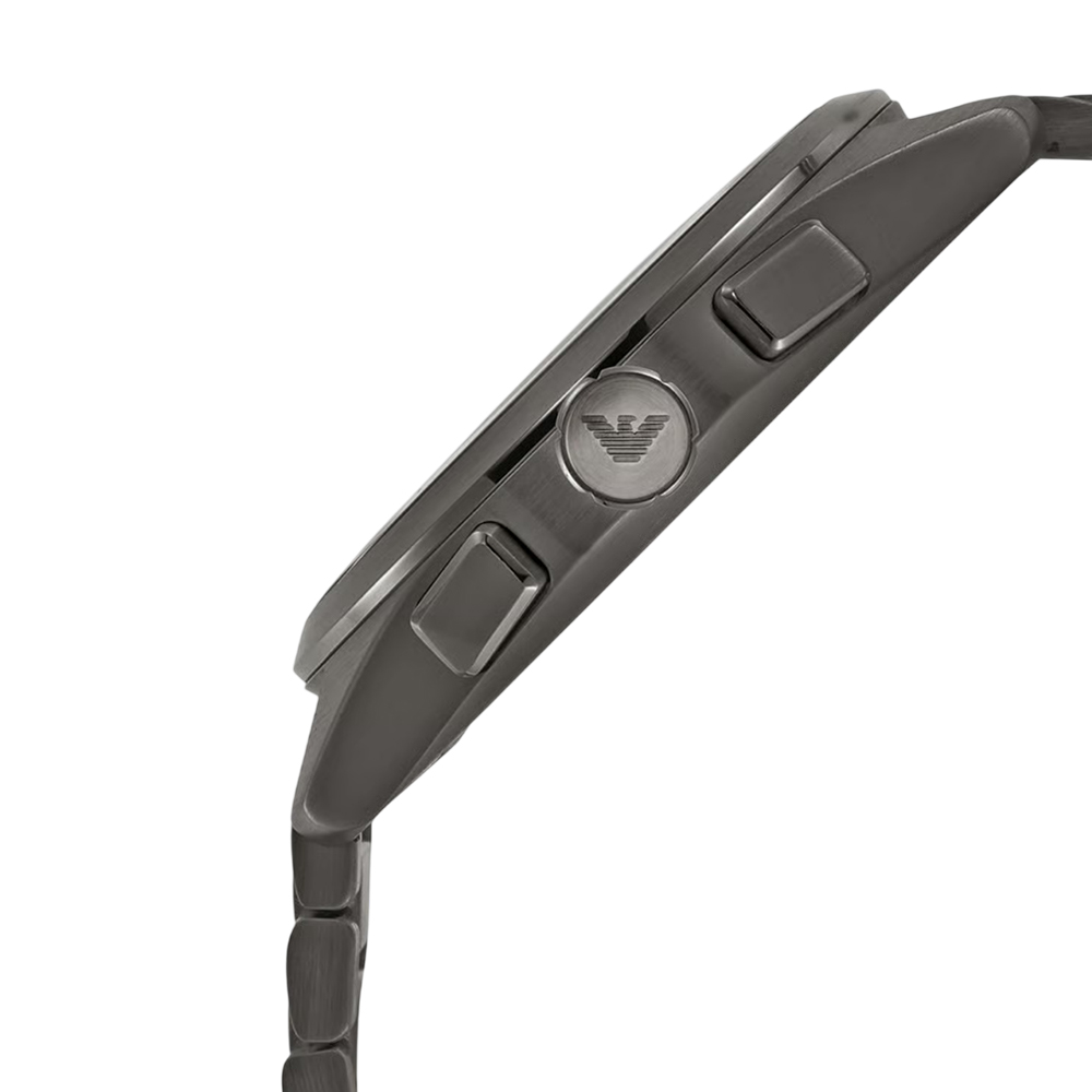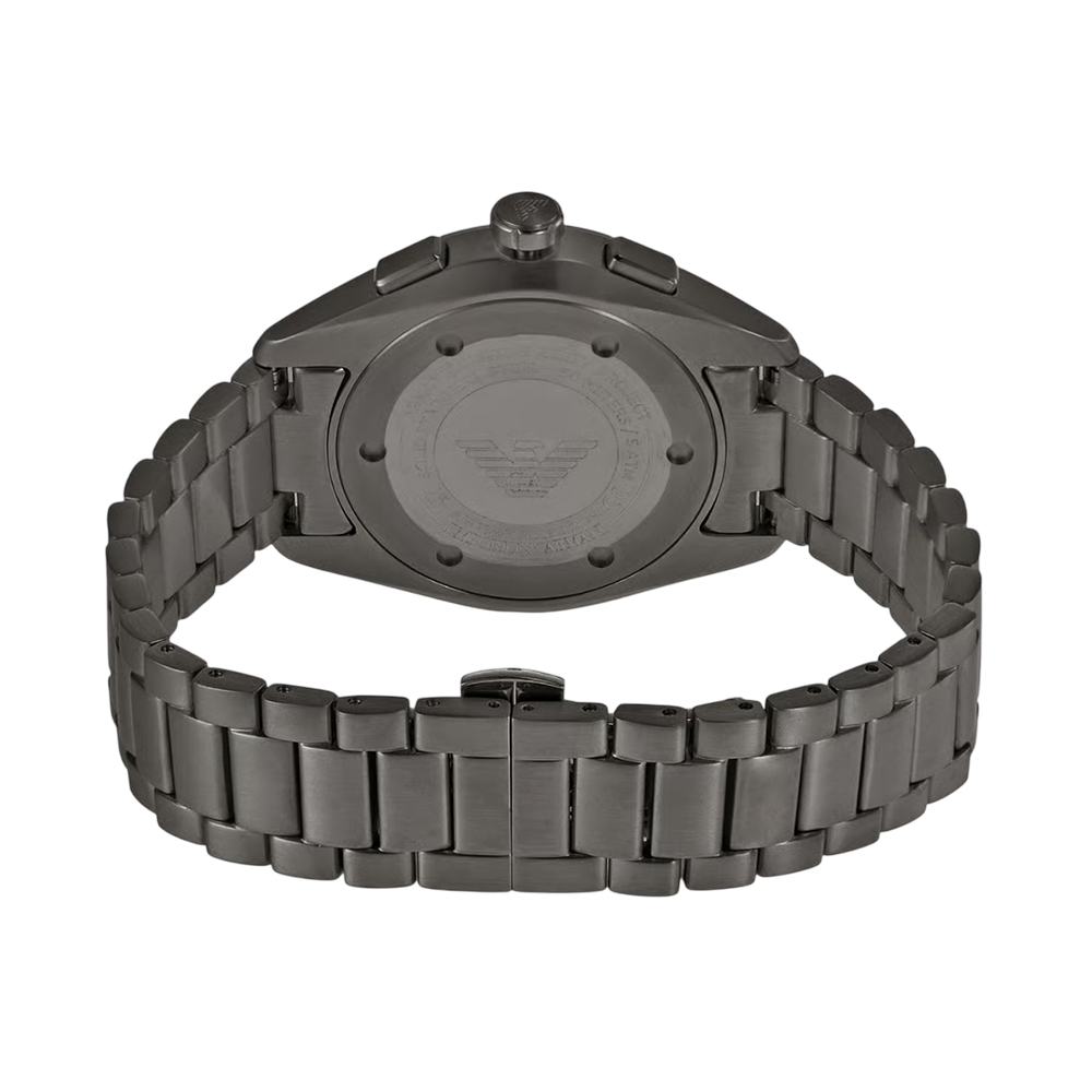 This must-have Emporio Armani wrist essential offers a sophisticated blend of form and function. It features a navy blue chronograph dial protected by durable mineral glass, powered by a precise quartz movement. The black-toned stainless steel bracelet provides a secure and elegant fit with a jewelry clasp. Combining Italian design with functionality, this Emporio Armani watch is ideal for the modern man seeking a versatile accessory for professional or casual wear.
