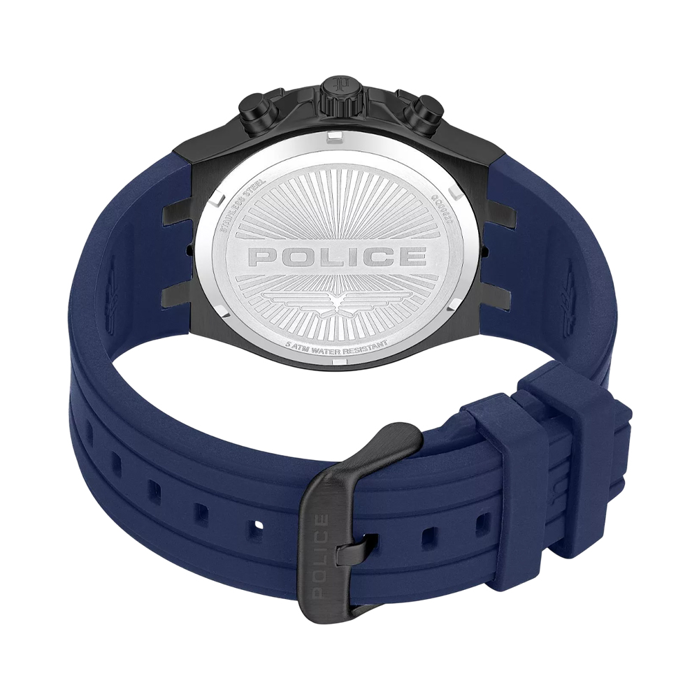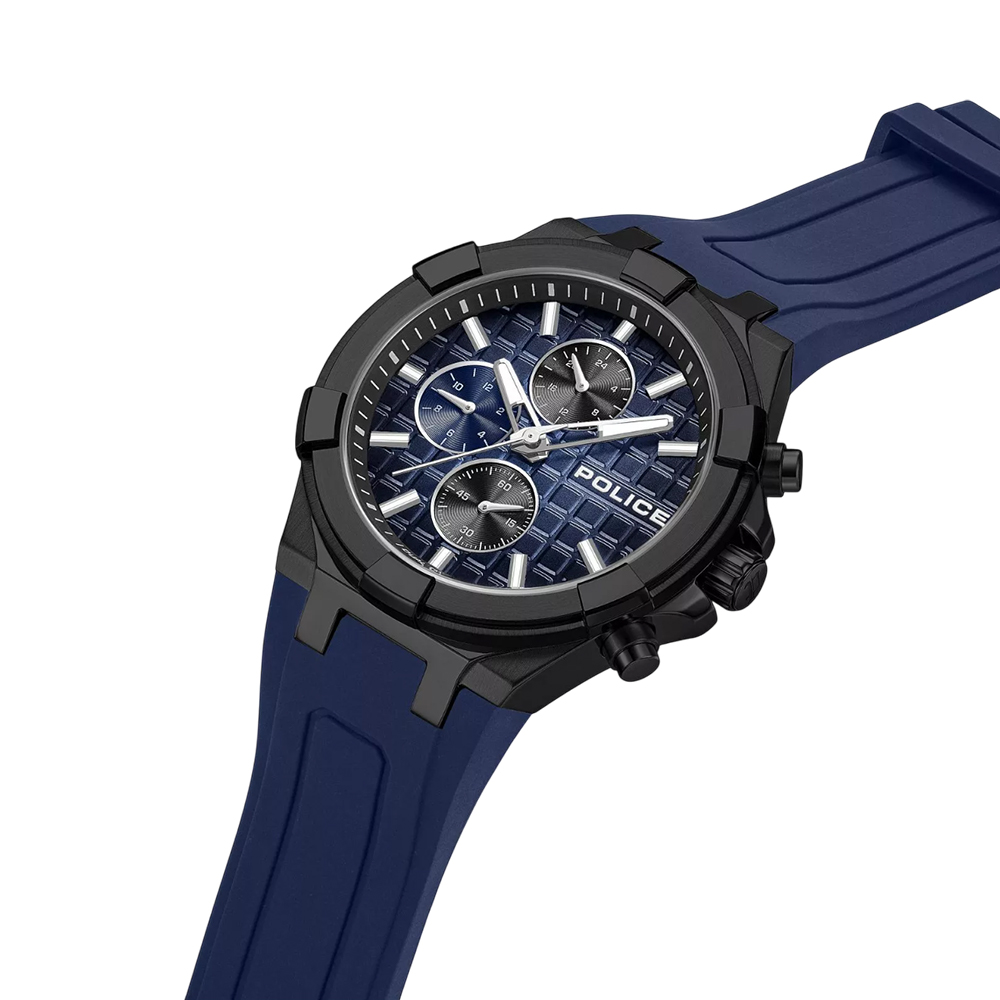 Guardian is a chronograph watch by POLICE, designed with a stainless steel case and a blue dial accented with black details. The watch features quartz movement, mineral glass, and a stylish day-date display. It's suited for men seeking a mix of sporty and elegant aesthetics, combining reliable performance with urban style and a robust build.