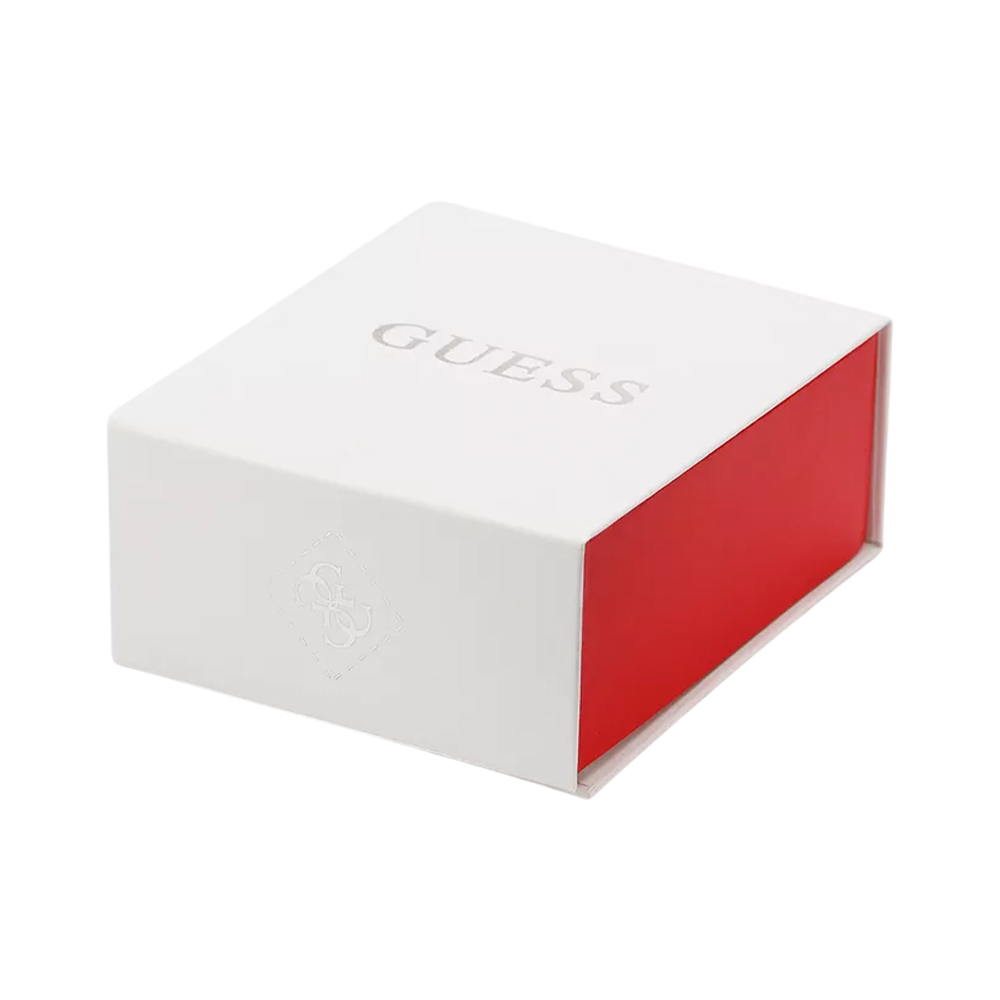 Crafted from high-quality gold-plated stainless steel, these GUESS earrings feature a classic J-hoop silhouette that elegantly frames the face. The design is highlighted by a delicate heart charm accented with sparkling crystals, embodying the glamorous and feminine spirit of the GUESS brand. Measuring 20 mm, these durable and hypoallergenic GUESS earrings offer a secure fit and a high-shine finish, making them a perfect accessory for adding a touch of romance and luxury to any styling.