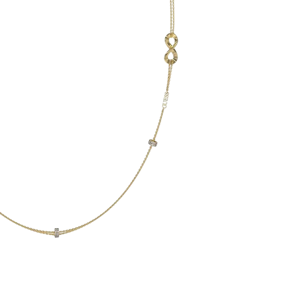 The GUESS Endless Dream Necklace JUBN03260JWYGT/U is a luxurious GUESS statement piece designed for the modern woman. Crafted from high-grade stainless steel with a durable gold PVD coating, it features an elegant 84 cm opera-length anchor chain that allows for versatile styling. The design is highlighted by intricate symbolic motifs adorned with sparkling crystals, capturing the glamorous aesthetic of the GUESS brand. Secured with a reliable lobster clasp, this GUESS necklace offers both lasting quality and a sophisticated shimmer, making it an essential accessory for adding a touch of drama to any outfit.