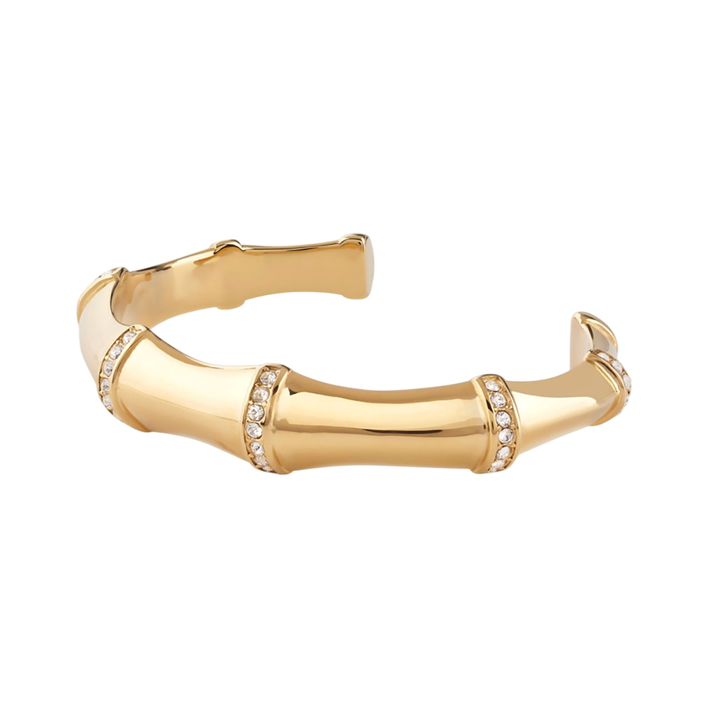 Elevated with shimmering crystal accents, the Guess Gold-Tone Bangle Bracelet JUBB05161JWYGS provides a touch of glamour and sophistication. Crafted from polished stainless steel, it guarantees durability and style, perfect for both everyday and special occasions. Its adjustable design provides a comfortable and secure fit.