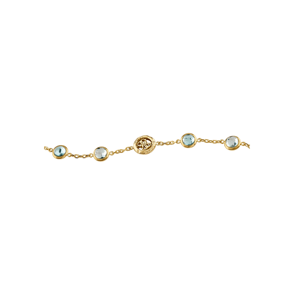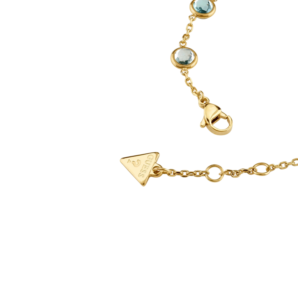Featuring a dazzling array of multicolor accents, the Guess Gold-Tone Stainless Steel Bracelet JUBB05099JWYGAQS combines shine and color for a spirited accessory. Its high-quality stainless steel construction ensures long-lasting wear and resistance to everyday damage. Perfect for women seeking a unique bracelet that adds a pop of color and elegance, this piece fits comfortably with an adjustable clasp suitable for various wrist sizes.