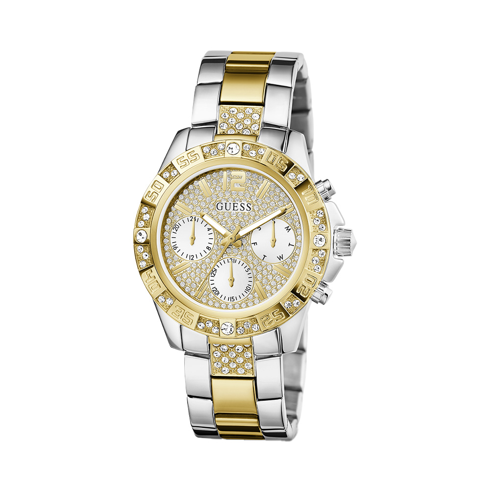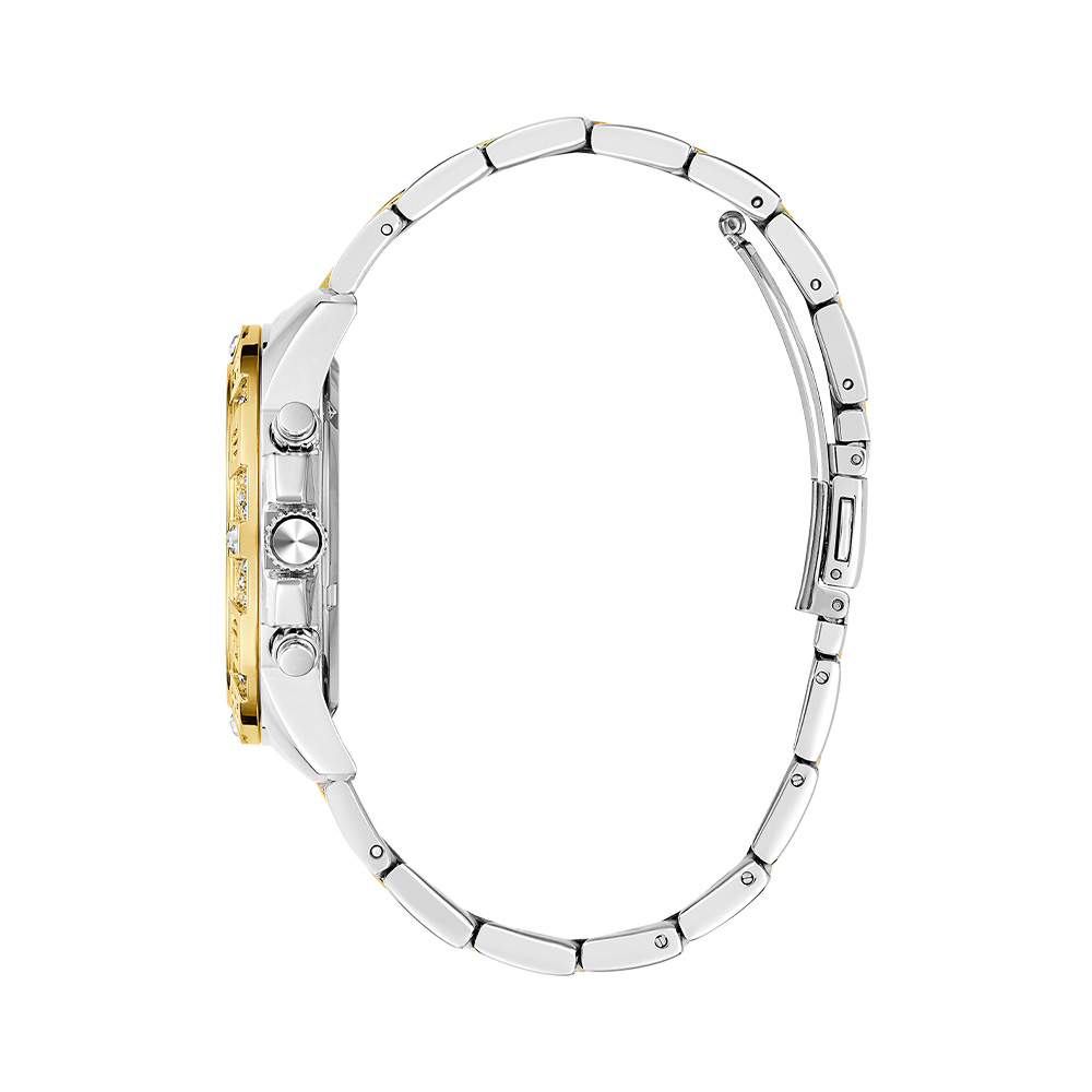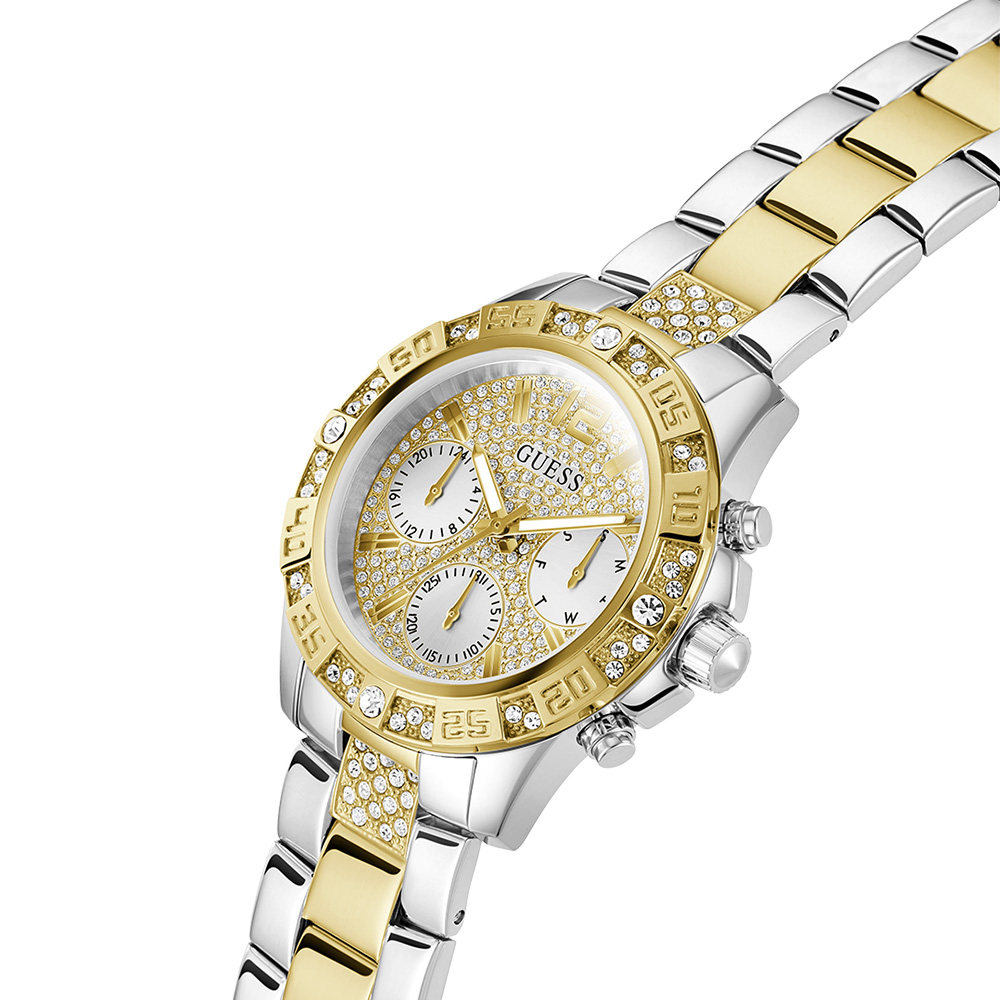 This Guess Ladies 2-Tone Multi-function Watch features a White dial with a 40 mm case, paired with a Stainless Steel strap. Powered by movement and protected by mineral glass, it ensures reliable performance. Water resistance up to makes it suitable for daily use.