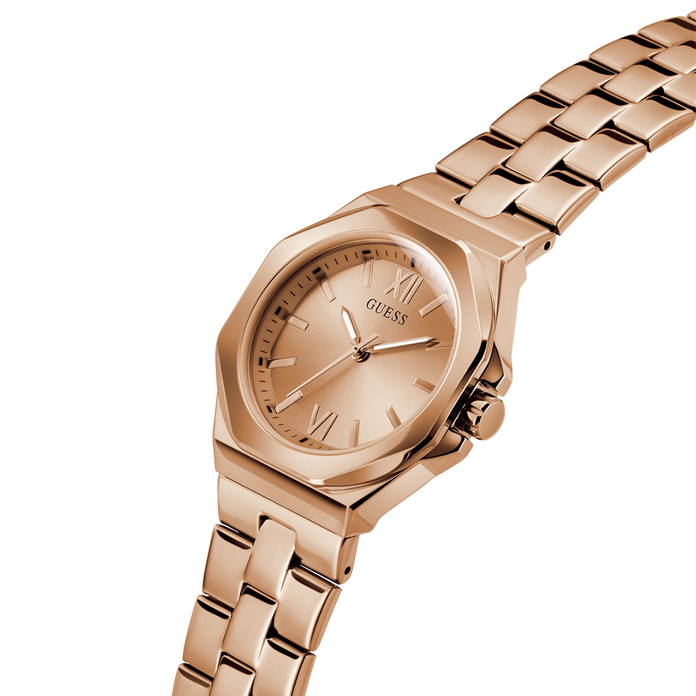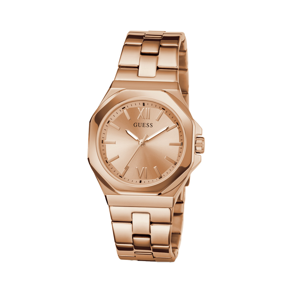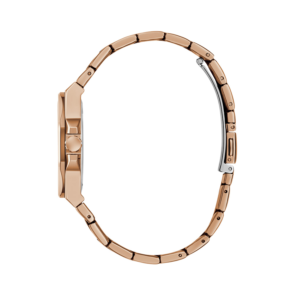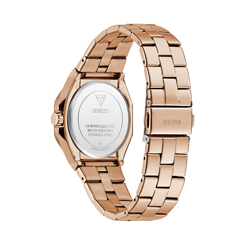 This Guess Ladies Rose Gold Tone Analog Watch features a Rose Gold dial with a 34 mm case, paired with a Stainless Steel strap. Powered by movement and protected by mineral glass, it ensures reliable performance. Water resistance up to makes it suitable for daily use.