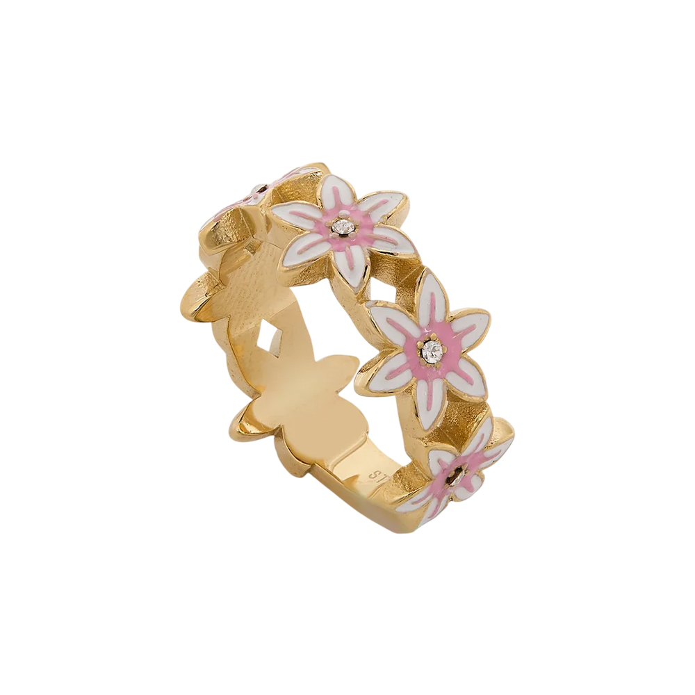 The GUESS White Lotus Multi Flower Ring JUBR04132JWYGWH56 is a sophisticated GUESS piece designed to embody enlightenment and rebirth. Meticulously crafted from high-quality stainless steel with a radiant yellow gold finish and white accents, this GUESS ring is both durable and skin-friendly. The intricate lotus motif reflects a blend of nature-inspired beauty and contemporary style, making it a symbolic addition to any jewelry collection. Engineered to withstand daily wear, its elegant silhouette offers a comfortable fit in size 56, perfect for the modern woman seeking a refined and purposeful GUESS accessory.