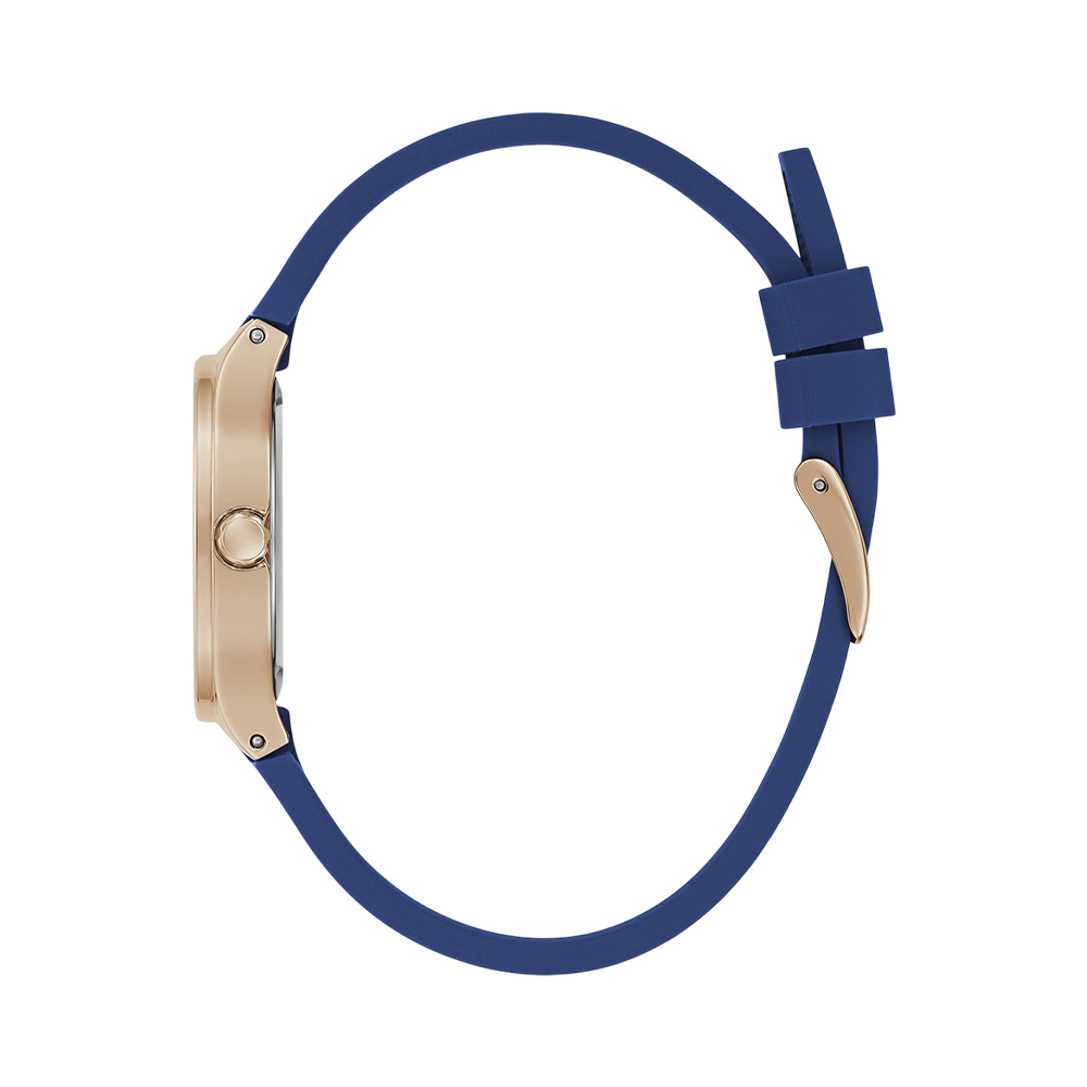 The Guess Eve watch GW0658L3 is a premium timepiece for women from the Eve collection. It features a modern and distinctive square stainless steel case with a white analog dial. A comfortable and secure blue silicone strap ensures a good fit for everyday wear. Powered by a reliable quartz movement and water-resistant up to 30 meters, this watch combines timeless elegance with durability.