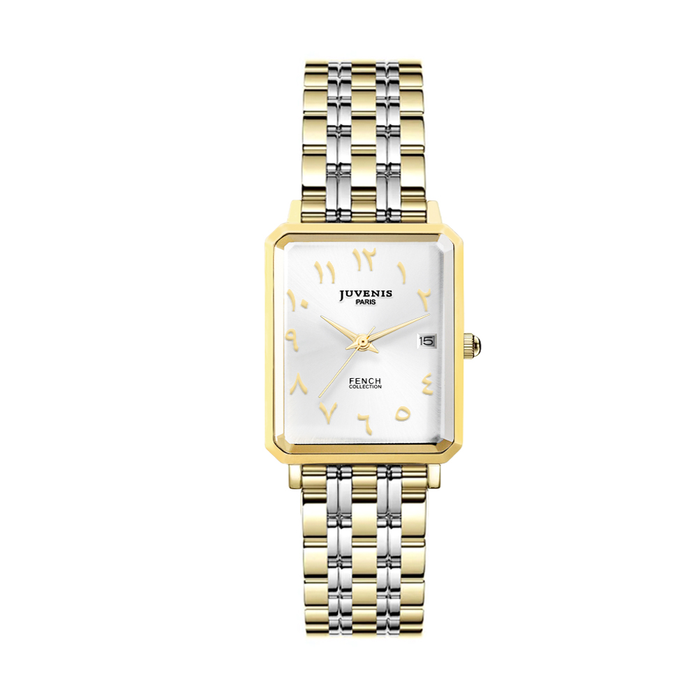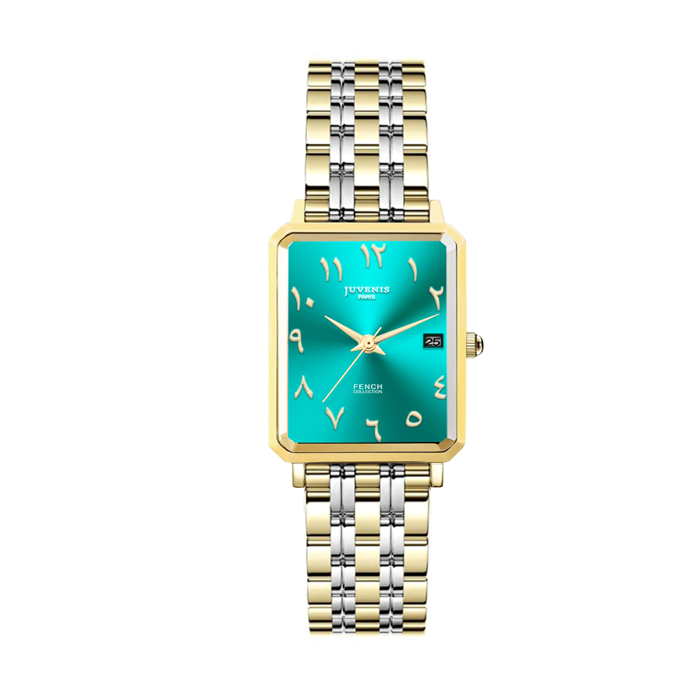 The Juvenis Silver Serenity watch is a fusion of style and tranquility. Its silver band and square case offer a sleek and modern aesthetic, while the green dial adds a pop of color and a sense of calmness. Protected by durable mineral glass, this watch is designed to withstand daily wear. With its precise Japanese movement, you can trust this watch to keep accurate time. Make a statement with the Juvenis Silver Serenity watch, a versatile accessory for any occasion.