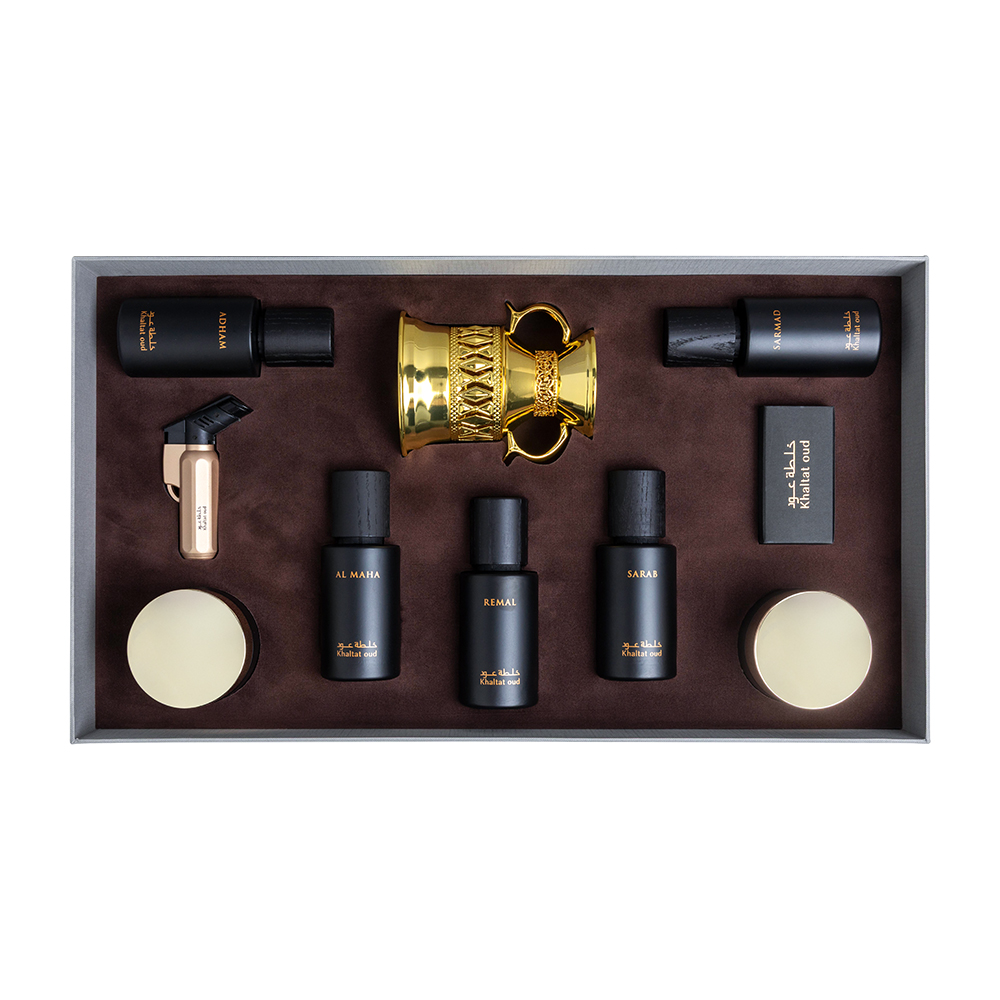 In addition to the fragrances, this gift set also includes a unique burner, Khaltat Oud coal, and lighter, making it the perfect way to experience the full range of aromas that Karji Brand has to offer. The burner provides a stylish and convenient way to enjoy the fragrances, while the Khaltat Oud coal and lighter make it easy to start and maintain the burner.
