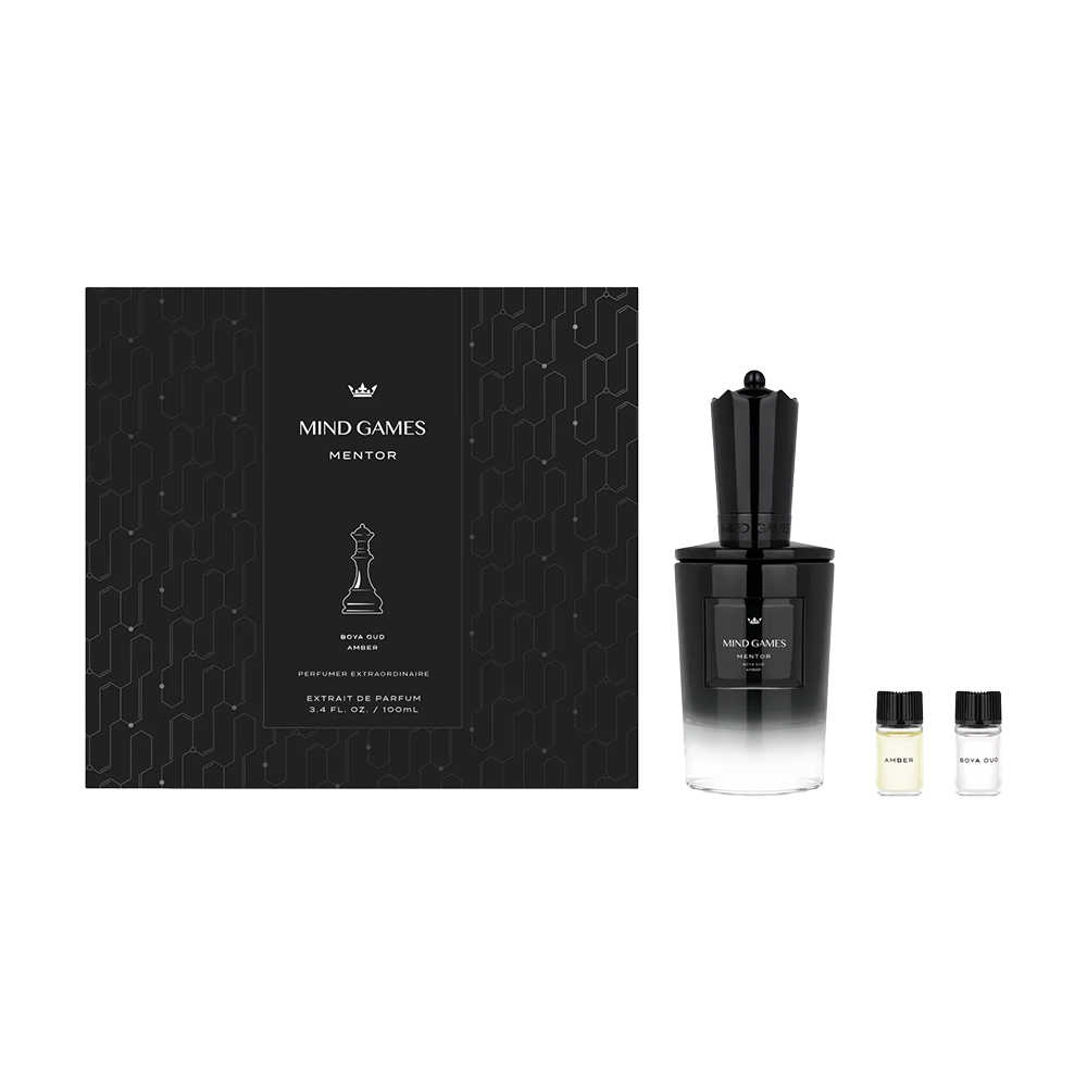 Mentor is a fragrance that celebrates contrasts. It is a blend that is both indulgent and complex, offering a unique take on the classic gourmand profile. At its core is Boya Oud, a smoky and sophisticated ingredient that provides an earthy base. This is complemented by the warm, honeyed tones of Amber and Tonka Bean, creating a rich and grounded base that sets the stage for the fragrance’s development. Notes of Dark Plum bring a multifaceted sweetness and depth to the scent, revealing bursts of juicy sugars. The delicate balance of sweet and earthy notes serves to open and brighten the fragrance's base, creating a fragrance that is both engaging and evocative.