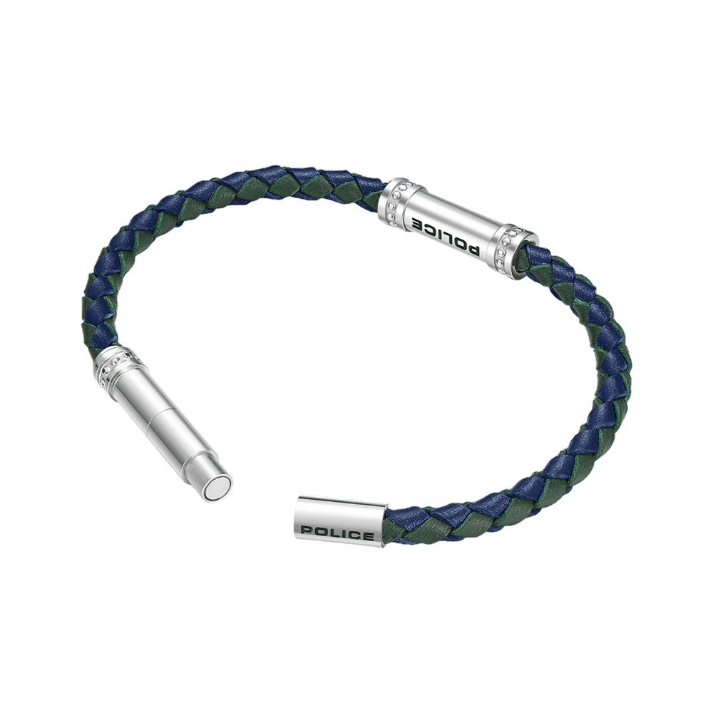 Embrace a rugged yet refined look with the Barrell bracelet by POLICE. This statement piece features a unique blue and green braided leather design, with a Barrell shaped hardware with POLICE signature sitting atop the wrist, exuding a sense of masculine sophistication. The secure magnetic closure ensures a comfortable, hassle-free wear, perfect for the man on the go.