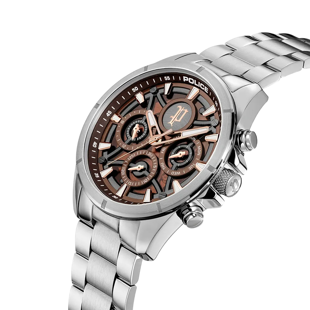 The Police Defender watch PEWJK2227812 is a multifunction timepiece featuring a stainless steel case, quartz movement, and complications including day, date and 24-hour dial. It offers a bold yet refined design, making it a versatile accessory for everyday wear or more formal occasions.