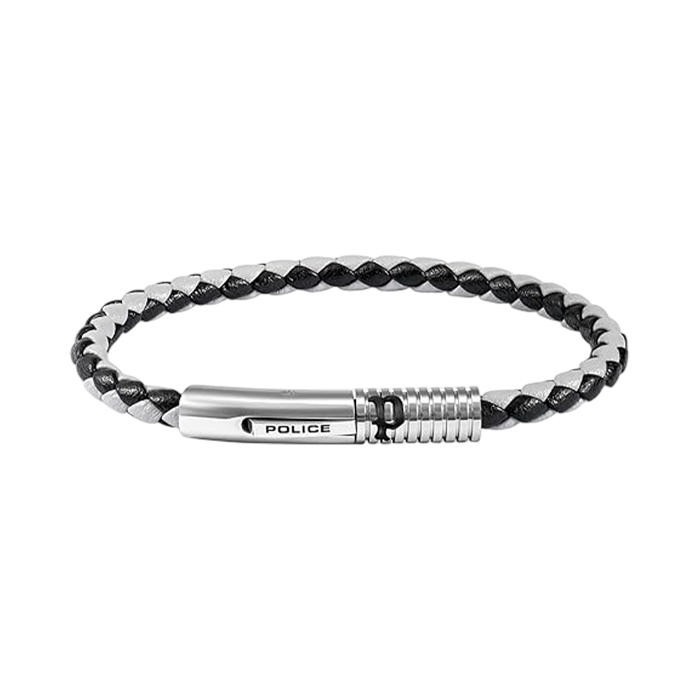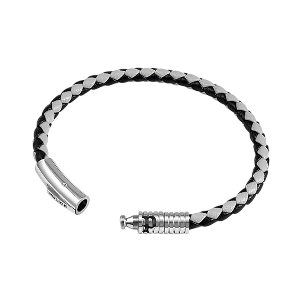 The POLICE Modish PEAGB0080301 men's bracelet is a stylish accessory, perfect for any man. Made of leather in black and gray, it has a braided design that gives it an original character. The steel clasp is decorated with "POLICE" lettering, highlighting its modern design.