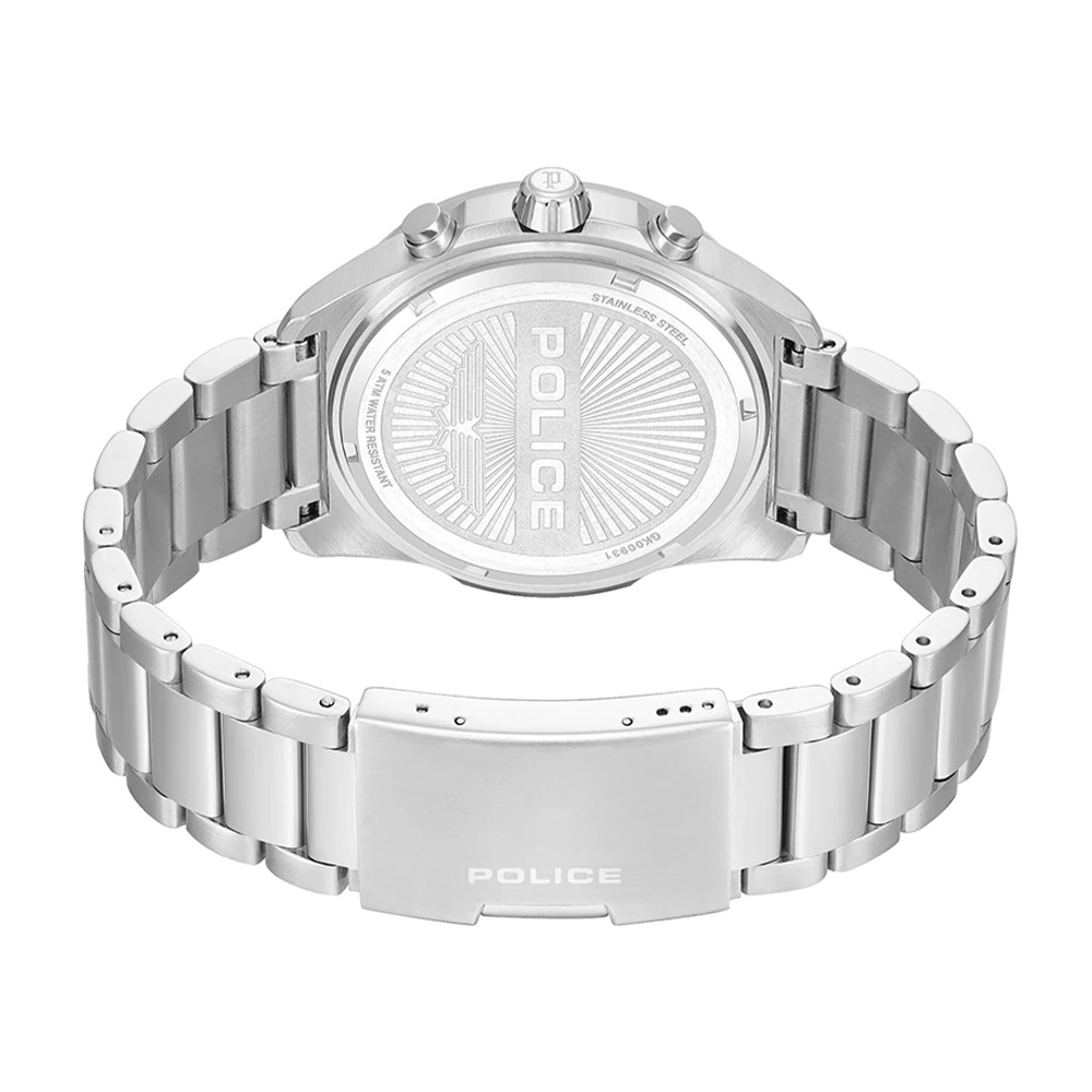 The POLICE Moonstrike Chronograph men’s watch PEWGK0093101 combines technical performance with contemporary design. The striking green dial enhances visibility while adding a bold visual appeal, complemented by chronograph functionality for precise time measurement and a 24-hour sub-dial for added utility. The 43 mm stainless steel case offers a balanced and comfortable wrist presence, paired with a matching stainless steel bracelet that ensures durability and a premium finish. The dial is protected by mineral glass, providing resistance against everyday scratches while maintaining clarity. Powered by a reliable Seiko Instruments quartz movement VD54, the watch delivers consistent and accurate timekeeping. With 5 ATM water resistance, it is suitable for daily use and protected against splashes and light water exposure. A perfect blend of functionality, durability, and modern style.