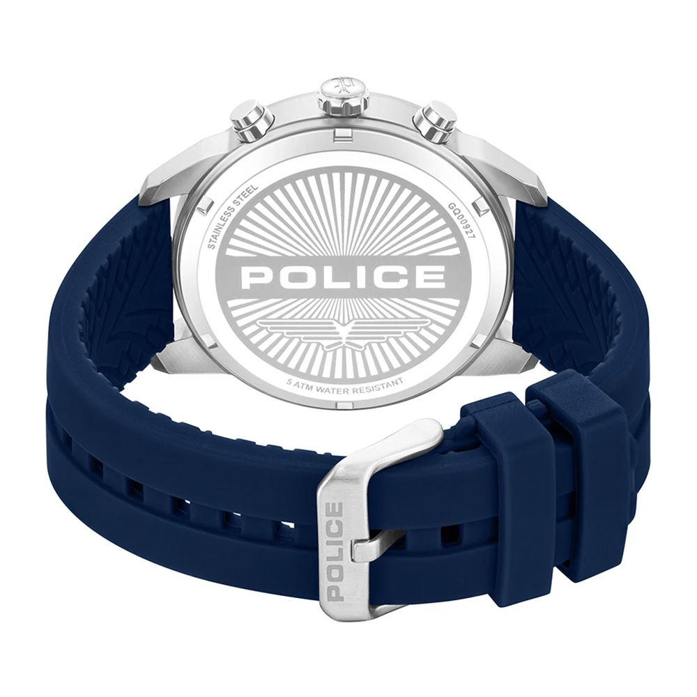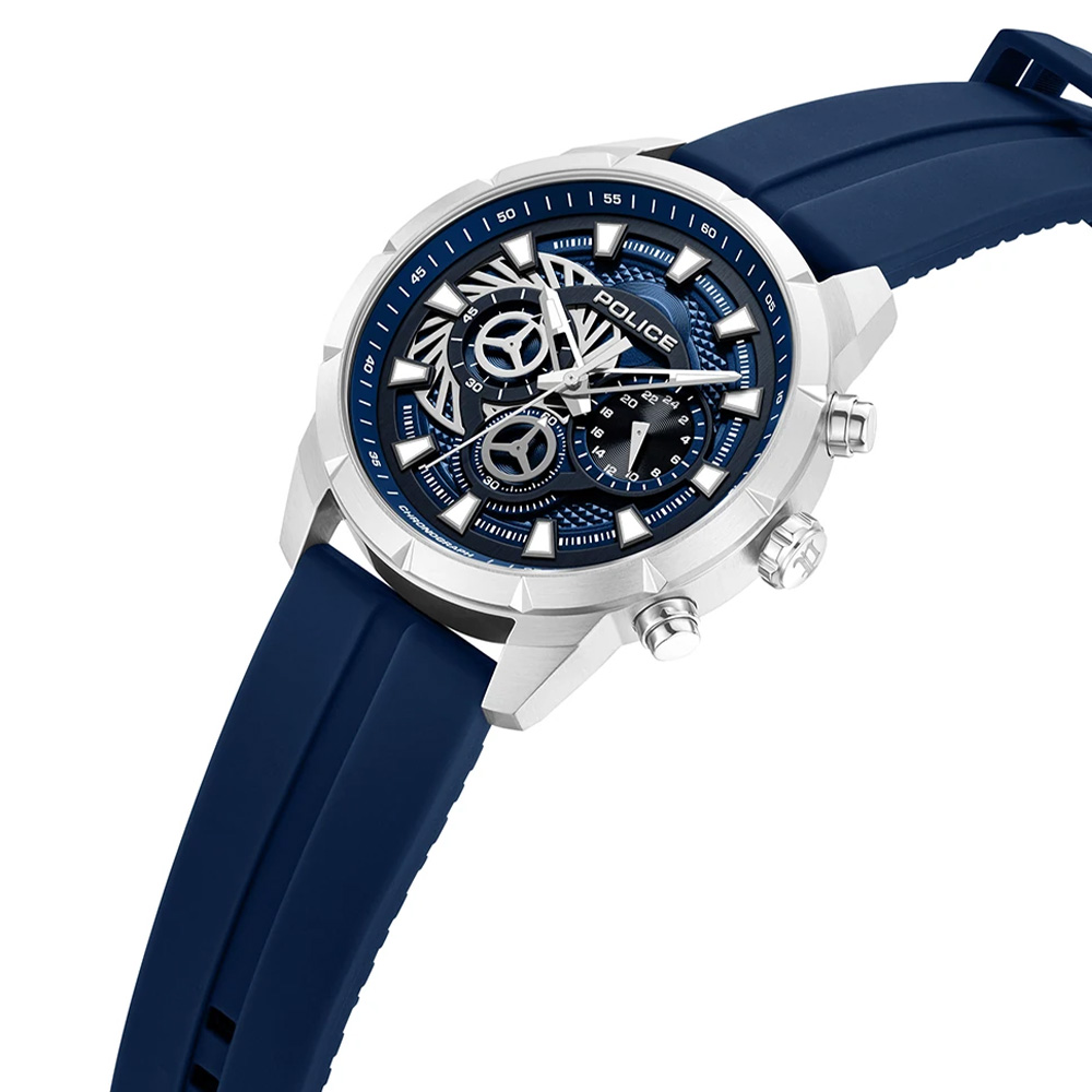 The POLICE Neist men’s watch PEWGQ0092702 is engineered for individuals who appreciate performance-driven design with a stylish edge. Featuring a vibrant blue dial with chronograph functionality, this timepiece allows precise time measurement while maintaining a bold and contemporary look. The 45 mm stainless steel case offers a strong wrist presence, complemented by a blue silicone strap that ensures flexibility, comfort, and durability during everyday wear. Powered by a reliable quartz movement from Seiko Instruments Inc., the watch guarantees accurate and consistent timekeeping. The dial is protected by mineral glass, providing resistance against scratches and maintaining long-term clarity. With 5 ATM water resistance, it is suitable for daily use, including exposure to splashes and shower conditions. Combining functionality, durability, and modern aesthetics, this watch is ideal for those who seek a sporty yet refined accessory.