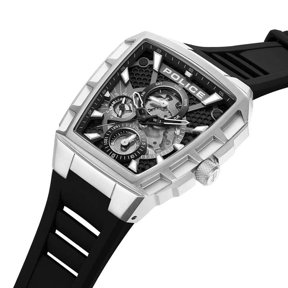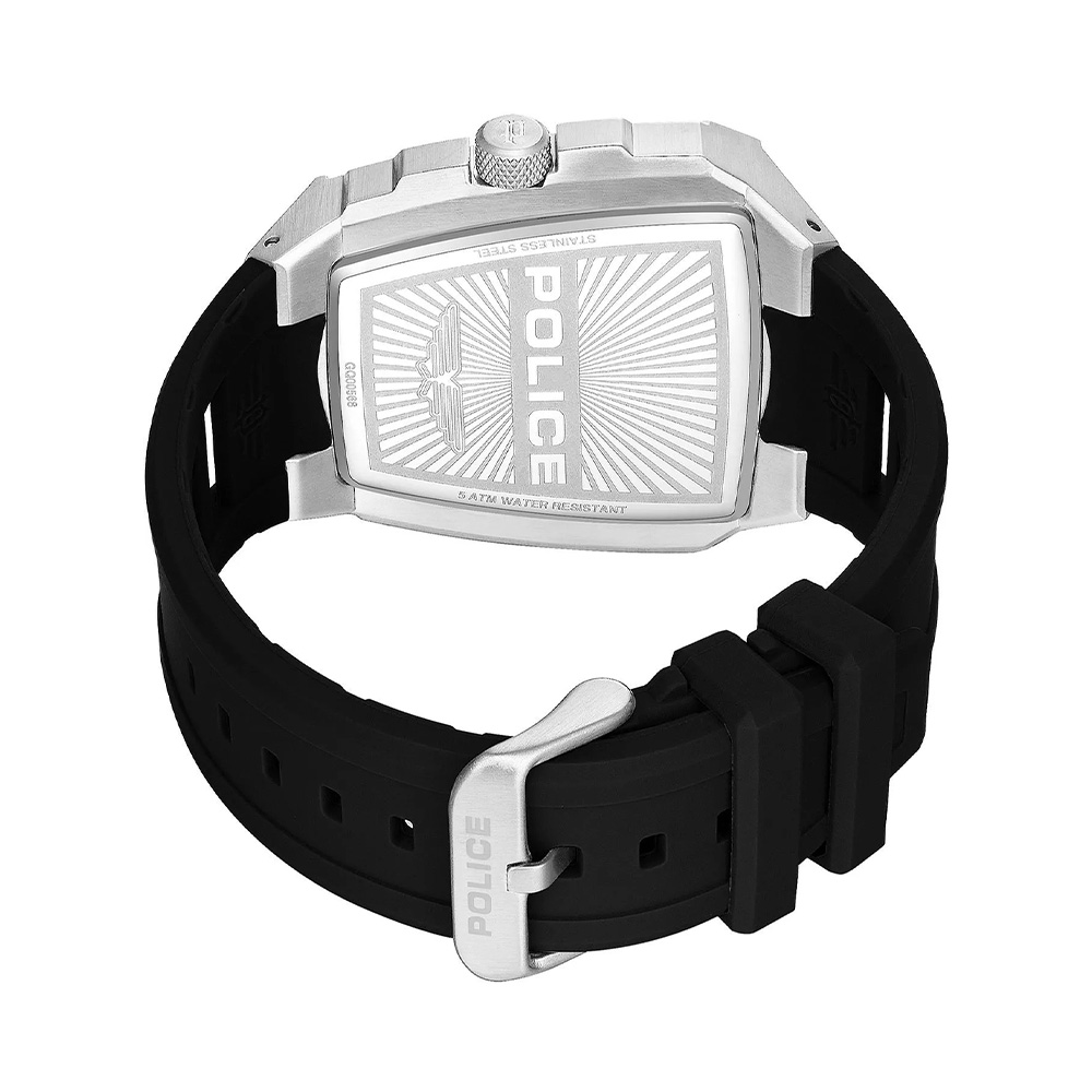 The POLICE Tough Gear men’s watch PEWGQ0056809 is built for those who prefer a robust and confident style combined with dependable performance. The deep black dial enhances its bold character, offering excellent readability while maintaining a sleek and modern look. Encased in a solid 46 mm stainless steel case, the watch delivers a powerful wrist presence suited for active and everyday wear. The black silicone strap ensures flexibility, durability, and long-lasting comfort, making it ideal for extended use in various environments. Protected by mineral glass, the dial resists everyday scratches and wear, preserving its clarity over time. With 5 ATM water resistance, the watch is safeguarded against splashes and light exposure to moisture. Powered by a reliable quartz movement, it ensures precise and consistent timekeeping, making it a perfect companion for those who value strength, simplicity, and functionality in a modern timepiece.