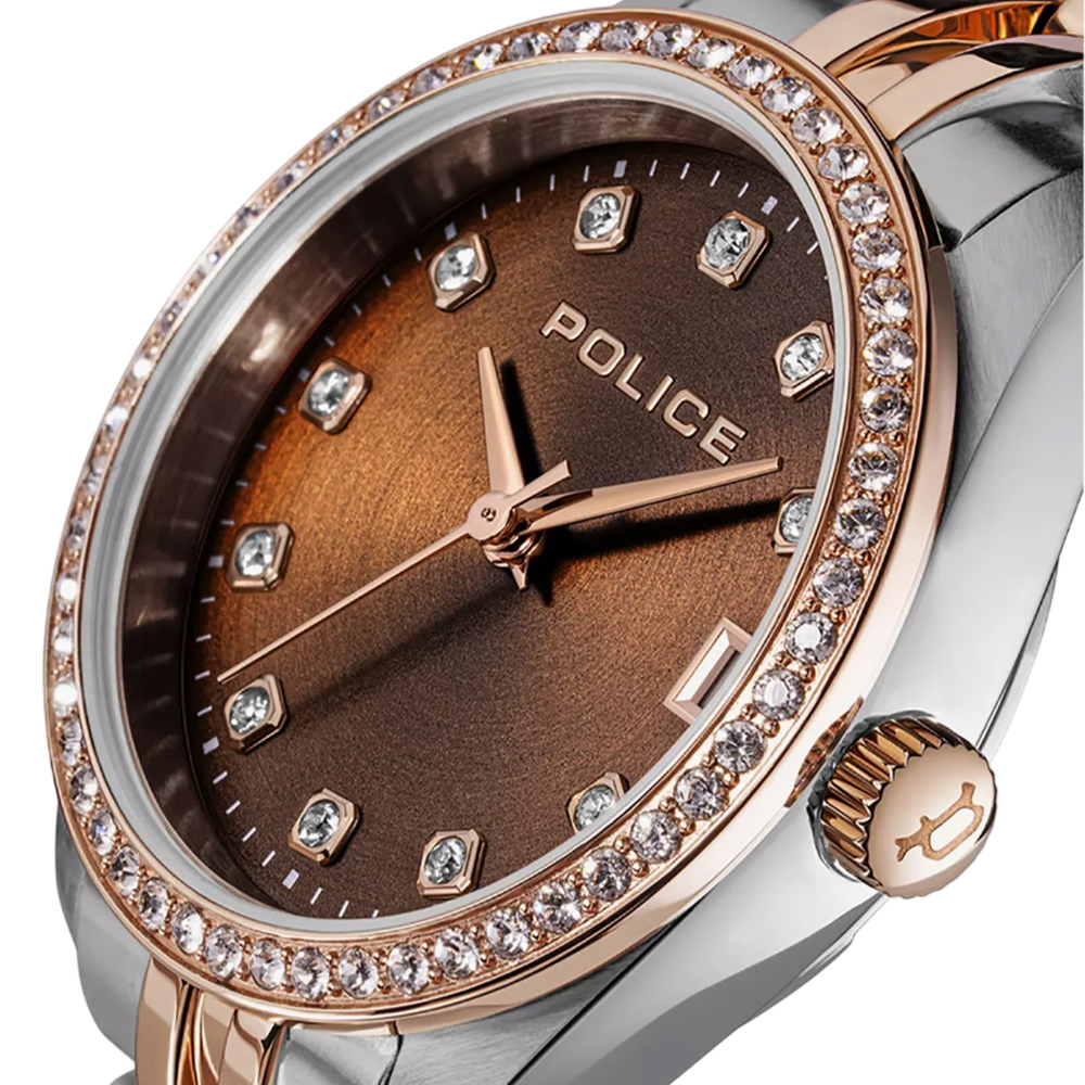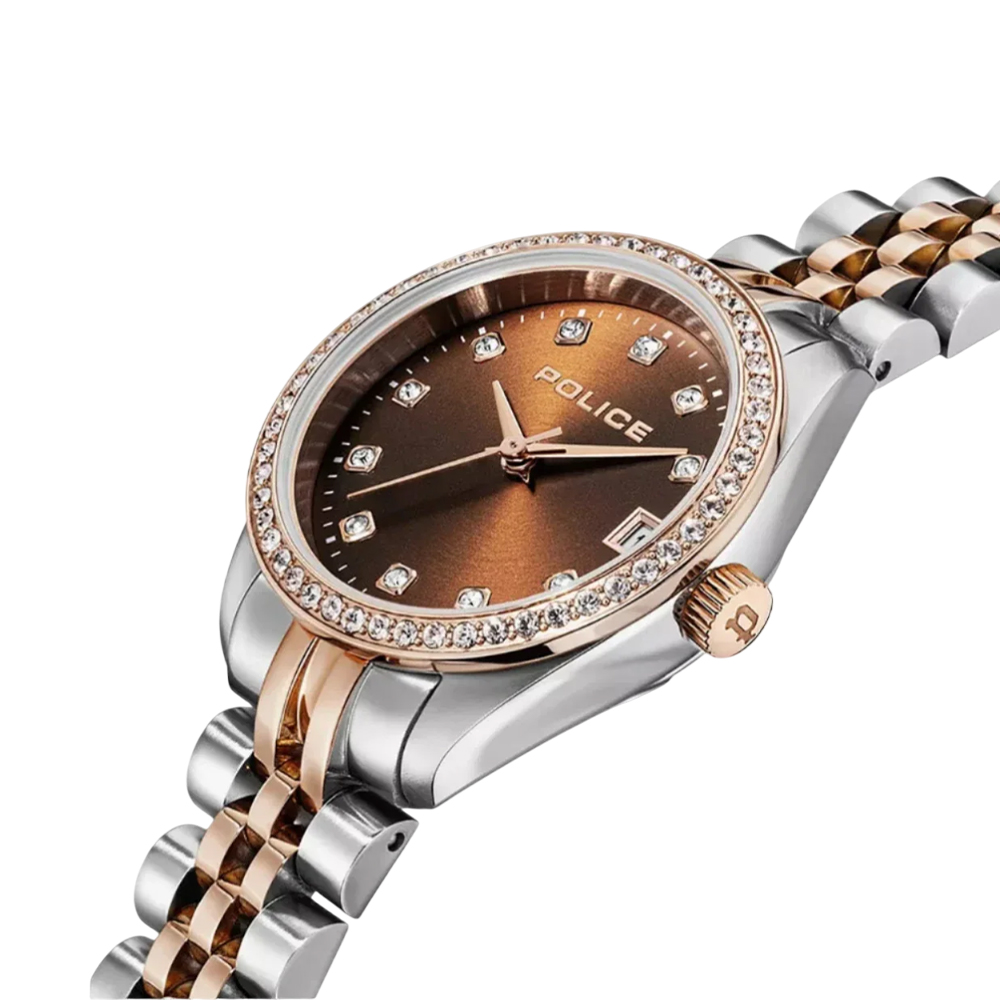 The POLICE Urban Ladies Watch PEWLH0024341 is a striking blend of contemporary industrial style and feminine elegance. This timepiece features a unique 28 x 32 mm rectangular case housing a deep brown analog dial, protected by durable mineral glass. The sophisticated bracelet is crafted from high-grade stainless steel with a versatile gunmetal, silver, and rose gold-tone finish, offering a modern look that transitions perfectly from day to night. Backed by a 2-year international warranty, this durable and stylish watch embodies the edgy yet refined spirit of the POLICE brand.