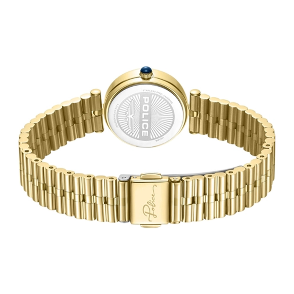 The POLICE women’s analog watch PEWLG2240602 is crafted for those who appreciate classic elegance with a modern edge. Featuring a crisp white dial, this timepiece offers excellent readability while maintaining a minimalist and sophisticated aesthetic. The 24 mm yellow gold-plated case enhances its luxurious appeal, perfectly complemented by a matching metal bracelet that provides a cohesive and polished look. Designed for comfort and durability, the foldable clasp ensures a secure and seamless fit on the wrist. The dial is protected by flat mineral glass, offering resistance against everyday scratches and preserving clarity. Powered by reliable quartz movement, the watch delivers accurate and consistent timekeeping. With 3 ATM water resistance, it is suitable for everyday use and protected against minor splashes and handwashing. Backed by a 2-year warranty, this watch is a perfect blend of elegance, functionality, and modern design.