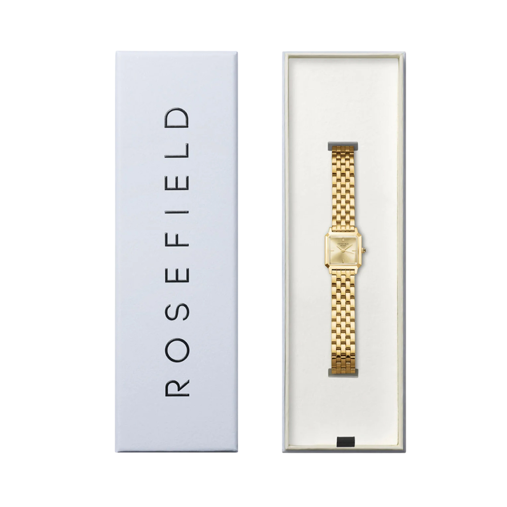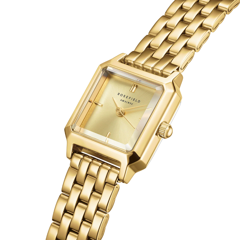 This elegant watch from the Boxelle collection combines classic luxury with modern geometric design. It features a stunning light champagne sunray dial housed in a 7mm thin brass gold case. The high-quality strap is crafted from 23K gold-plated stainless steel, offering a seamless golden aesthetic. Engineered with a precision quartz movement and 3 ATM water resistance, this watch is a versatile accessory that fits interchangeable straps from the Small Edit and Octagon XS collections.