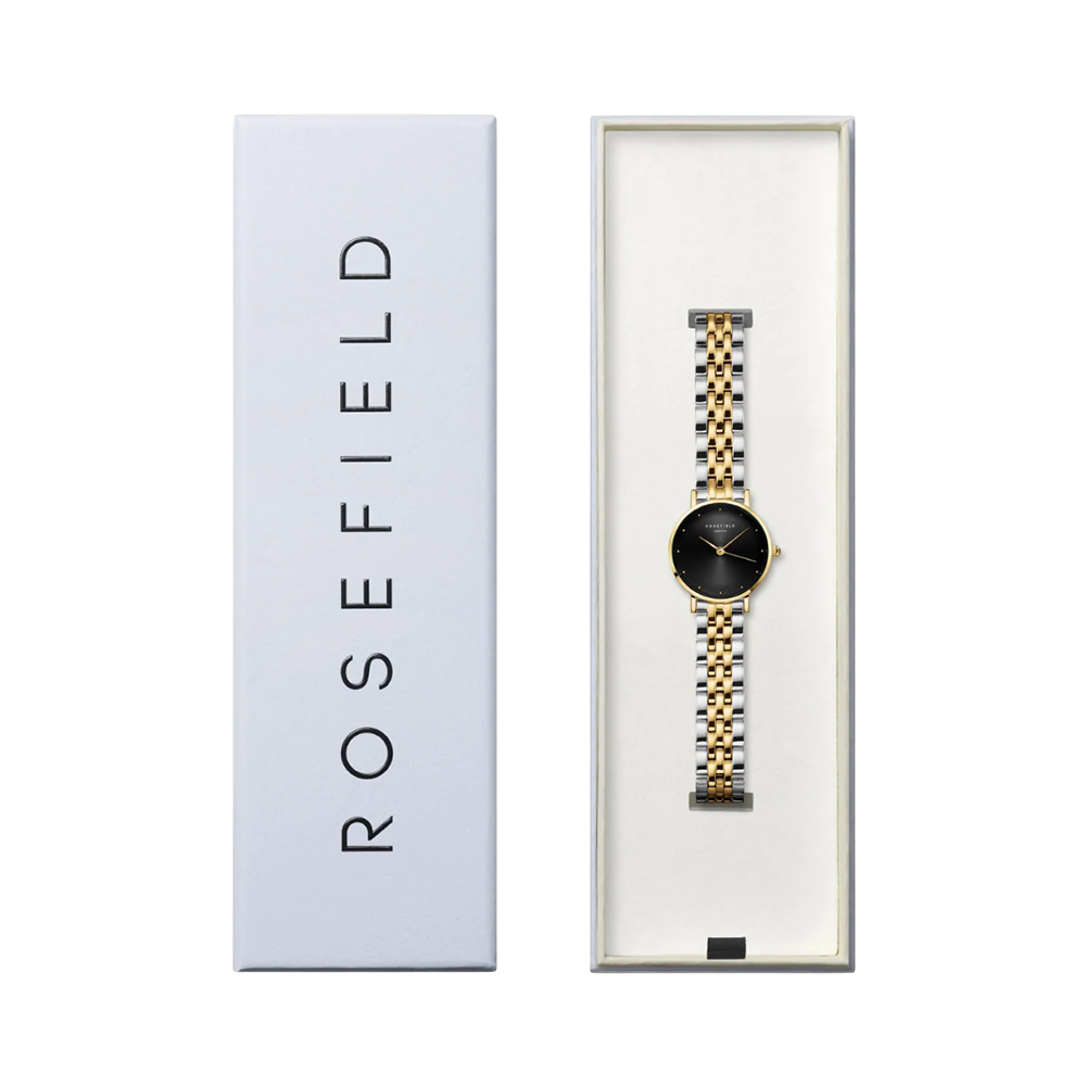 The Rosefield Small Edit Black Duotone Watch SEBDSG-SE04 features a compact 26 mm case, elegant black duotone bracelet, and a clean minimalist dial that reflects the brand's modern aesthetic. Designed for women, it offers a refined, understated look ideal for everyday wear or more formal occasions, combining style with practicality in a compact and polished accessory.