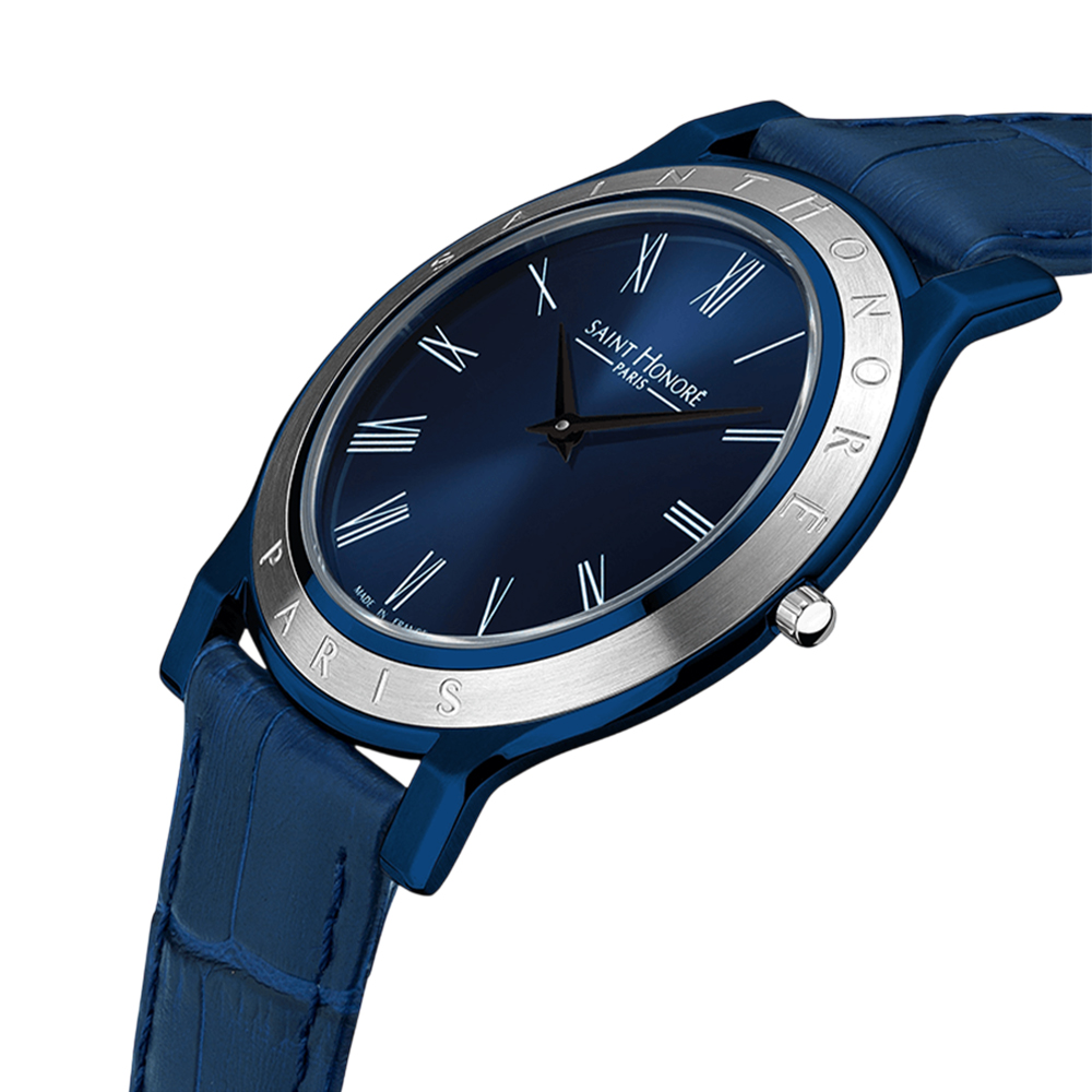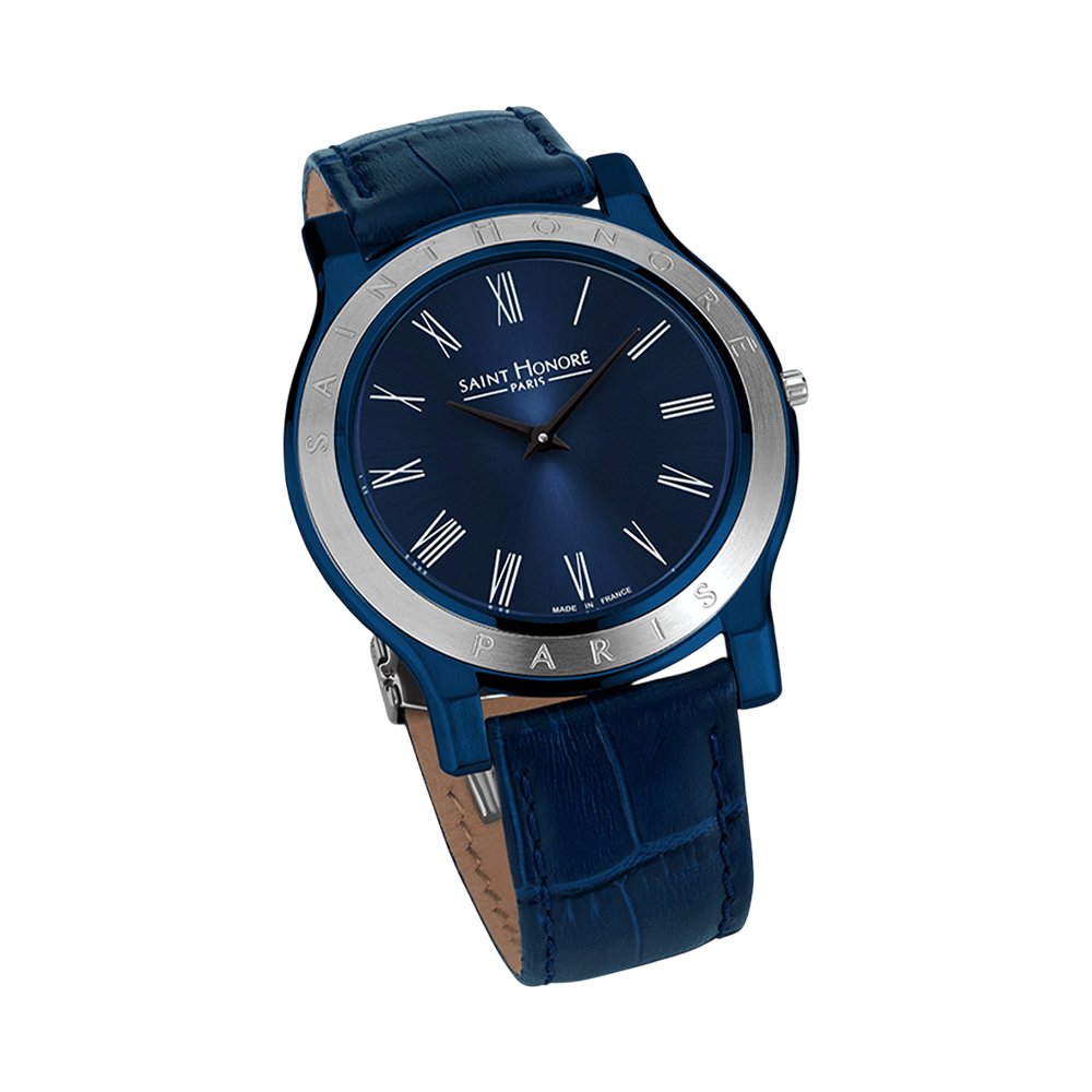 The SAINT HONORE Paris Deauville Watch DE826002 71DR-D is a refined timepiece that blends casual style with timeless elegance. It features a 42 mm round blue IP stainless steel case with a fixed silver-tone bezel, framing a captivating blue analog dial. Powered by a reliable Ronda Caliber 1062 quartz movement and protected by scratch-resistant mineral crystal, this watch is built for everyday durability. The comfortable blue rubber strap is secured by a buckle clasp, and the watch offers 3 ATM water resistance, making it both a practical and stylish accessory for the modern man.
